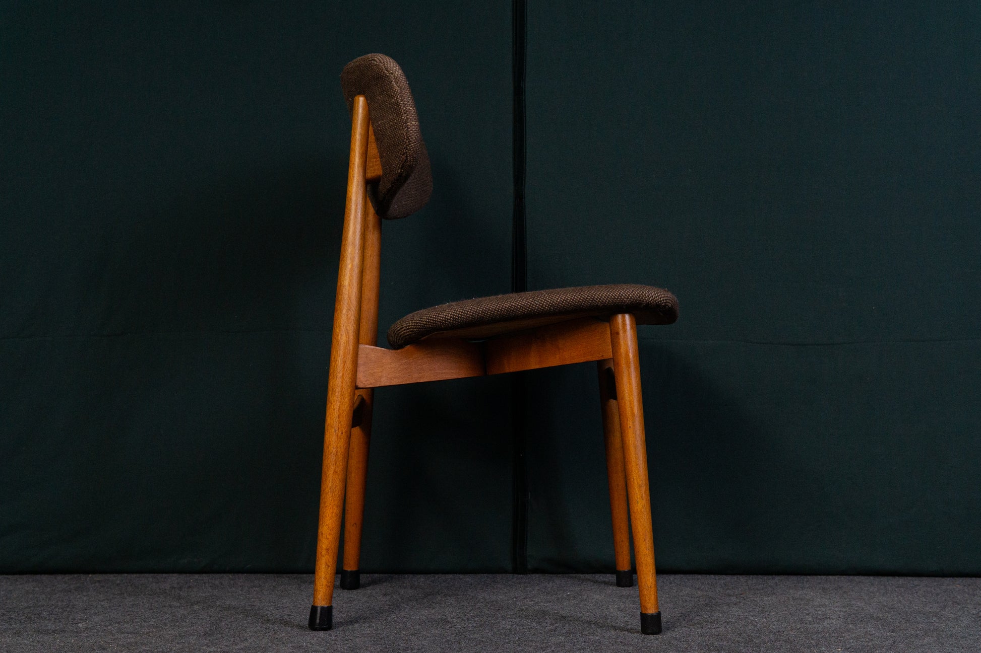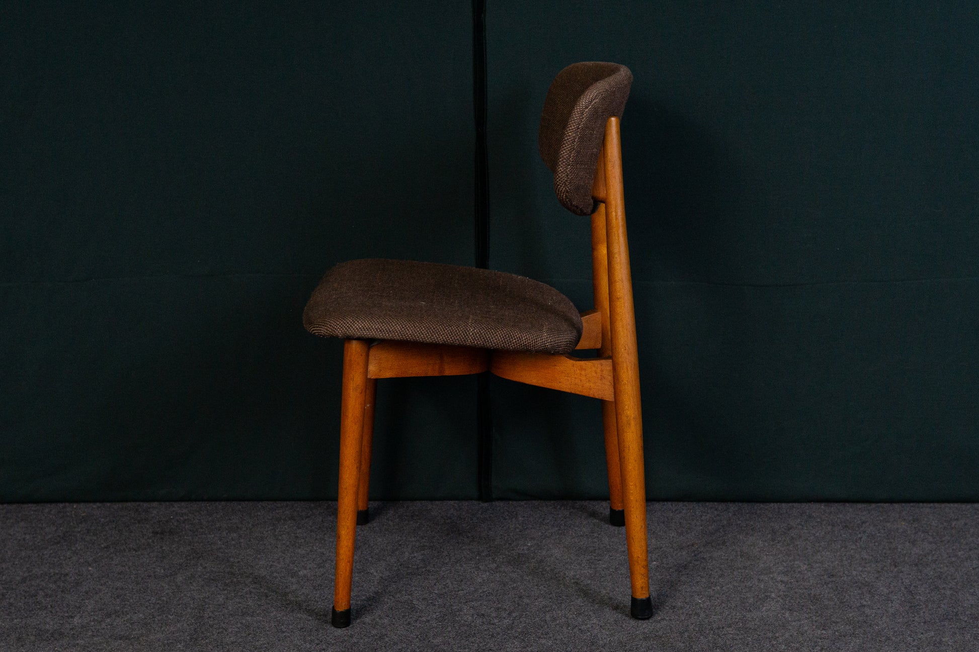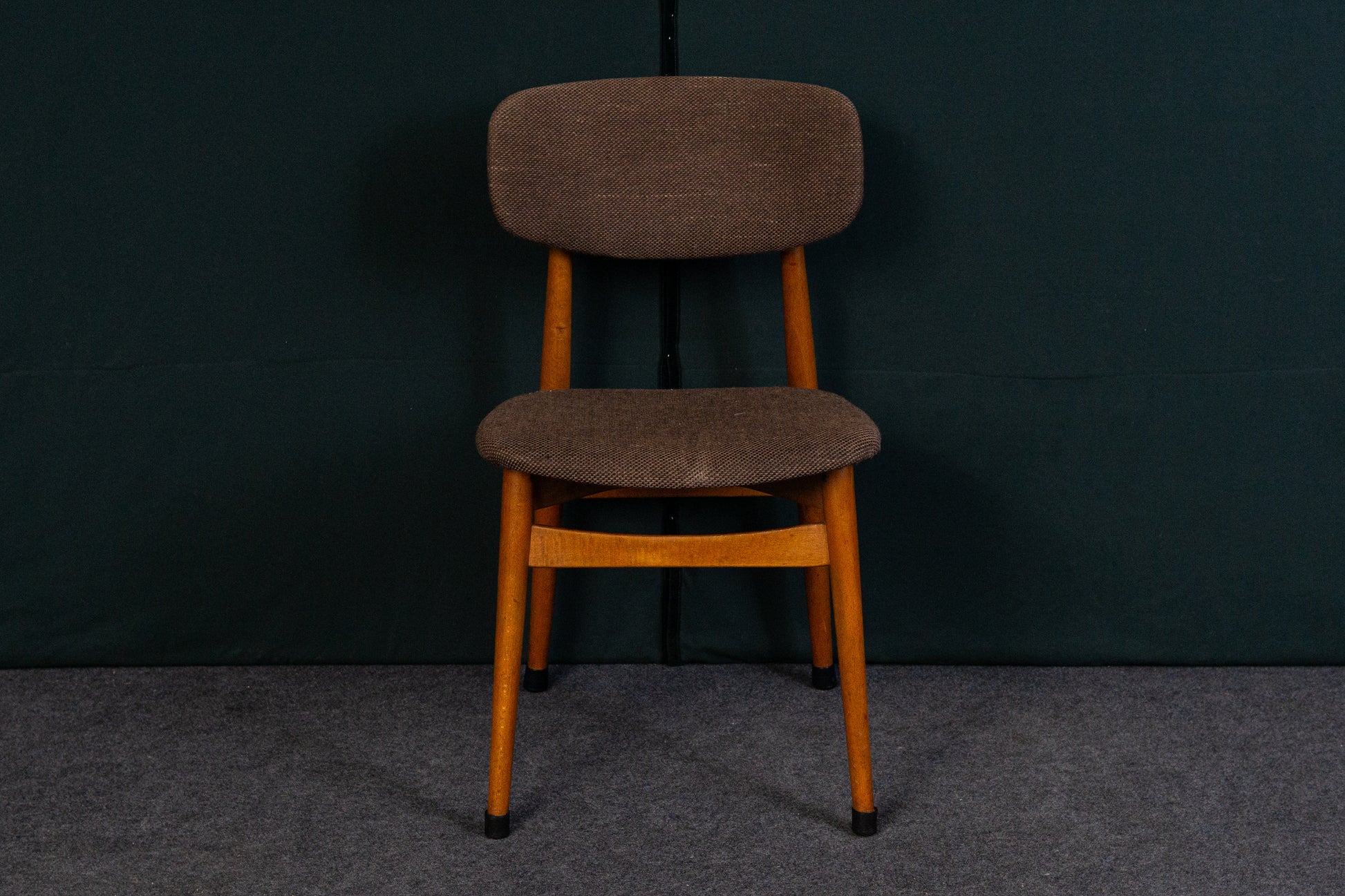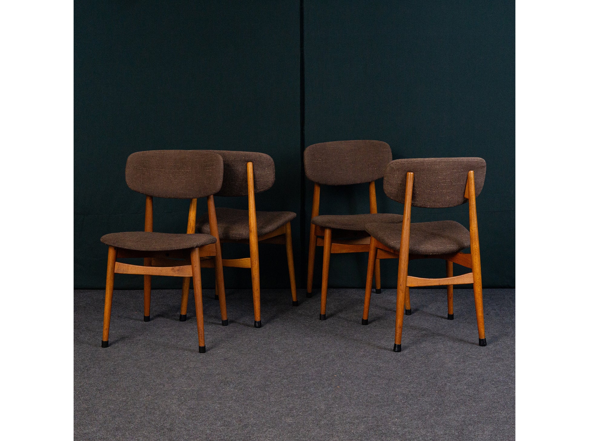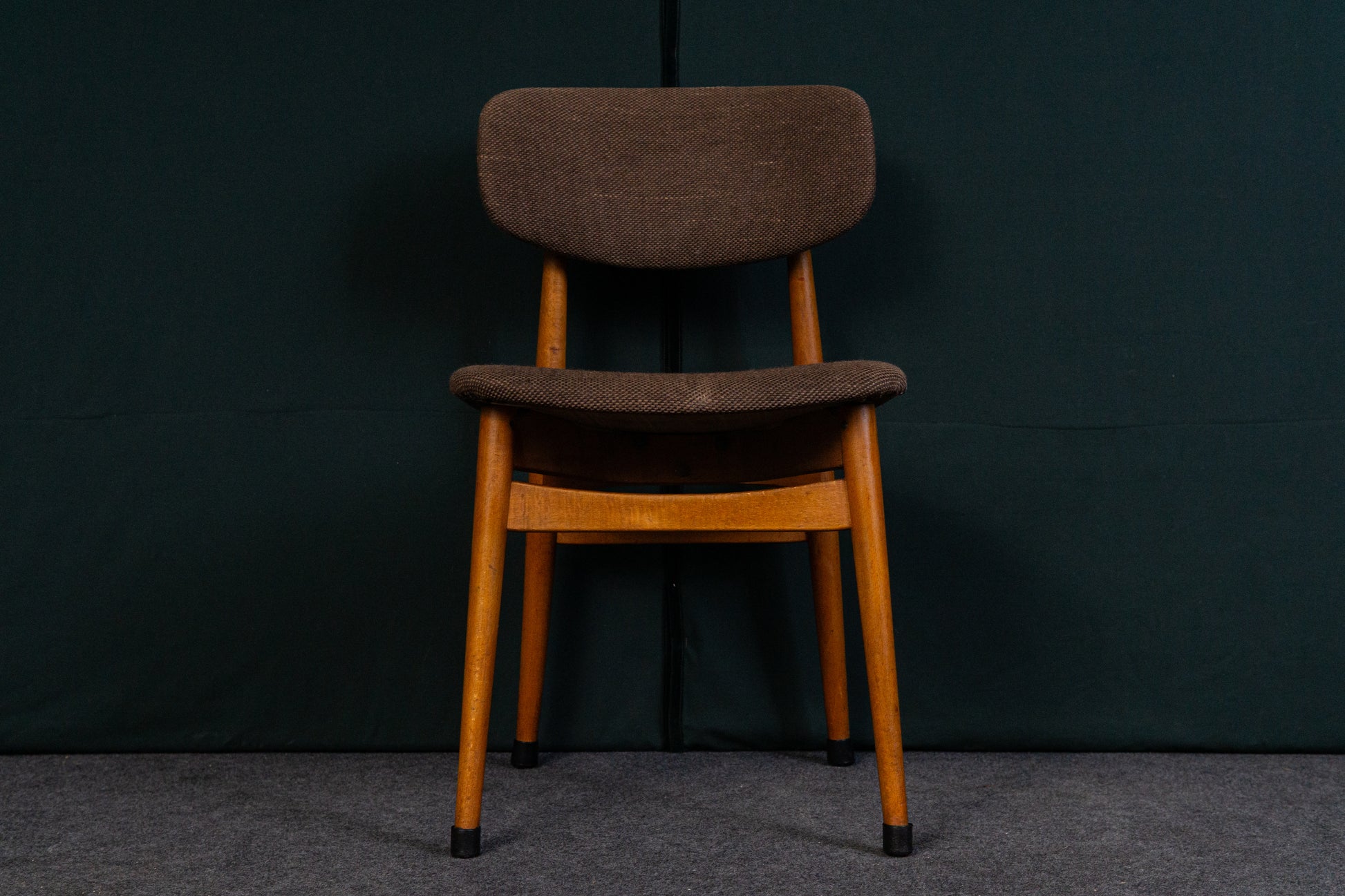 ZUSTAND. guter zustand mit altersbedingten gebrauchsspuren. die holzsitzfläche eines stuhls ist wohl mal etwas nass geworden. das holz unterhalb hat sich verfärbt und das furnier sich leicht gelöst. der stuhl ist allerdings noch voll nutzbar.