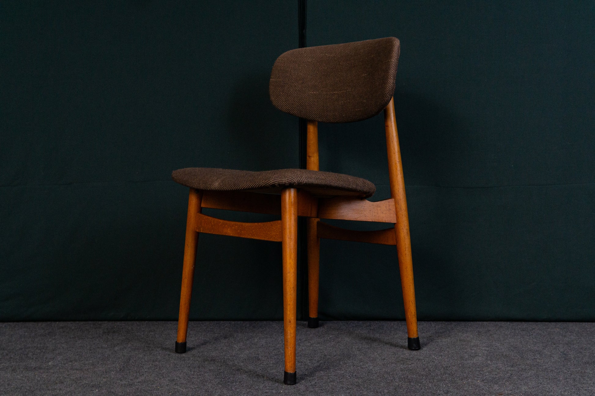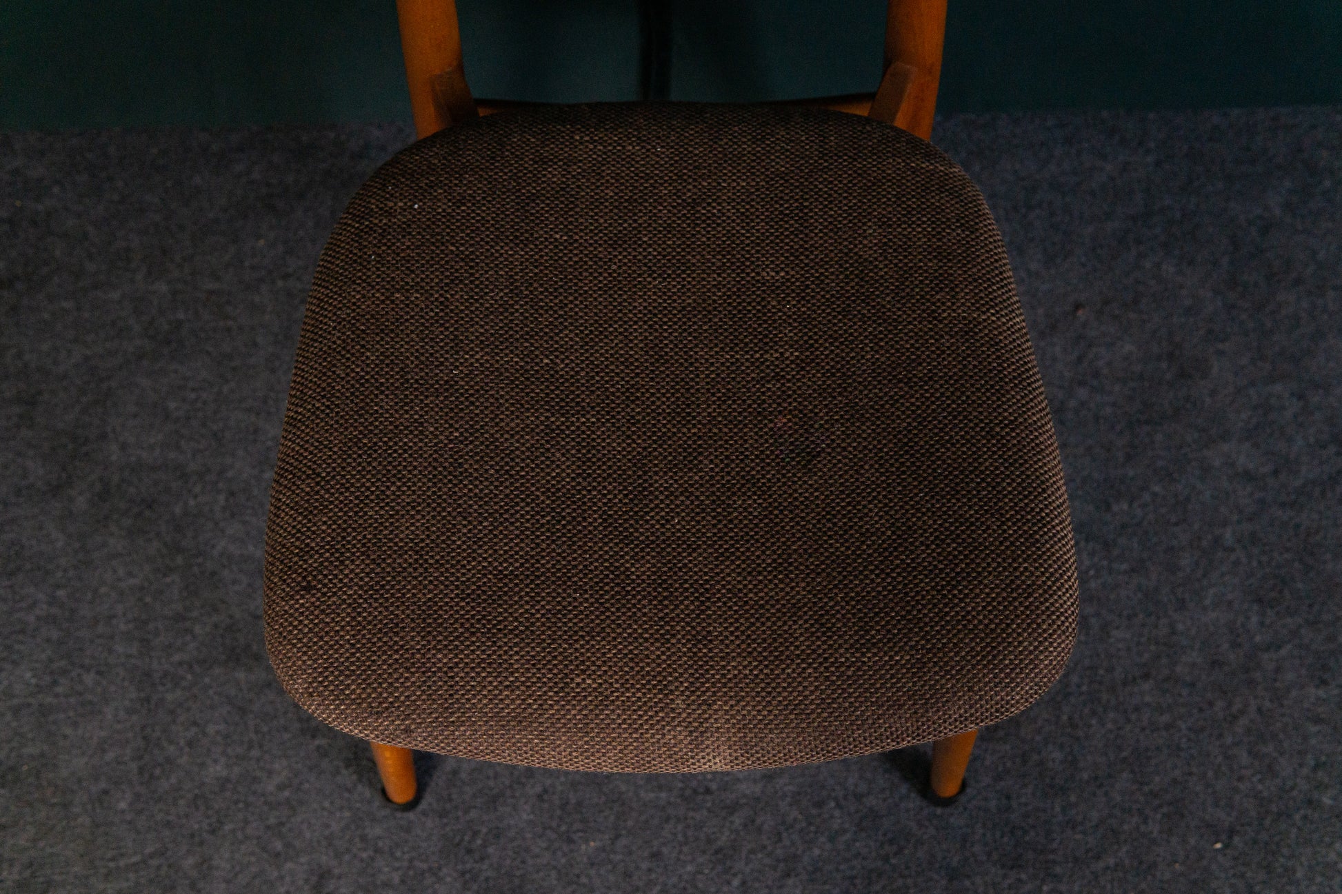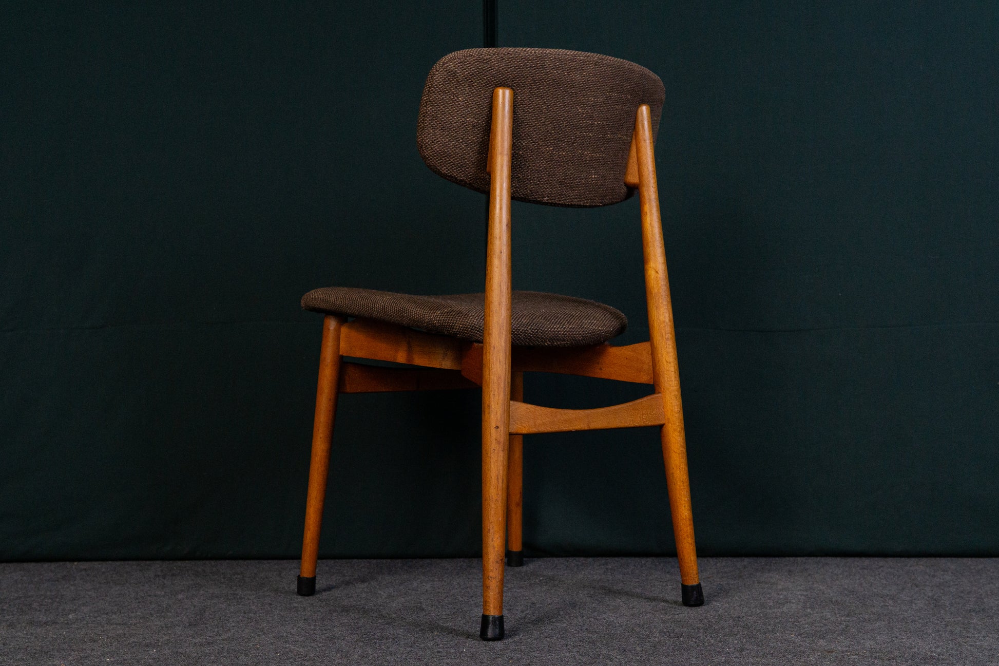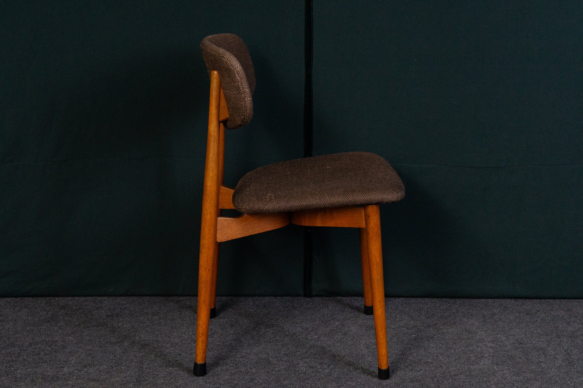 ZUSTAND. guter zustand mit altersbedingten gebrauchsspuren. die holzsitzfläche eines stuhls ist wohl mal etwas nass geworden. das holz unterhalb hat sich verfärbt und das furnier sich leicht gelöst. der stuhl ist allerdings noch voll nutzbar.