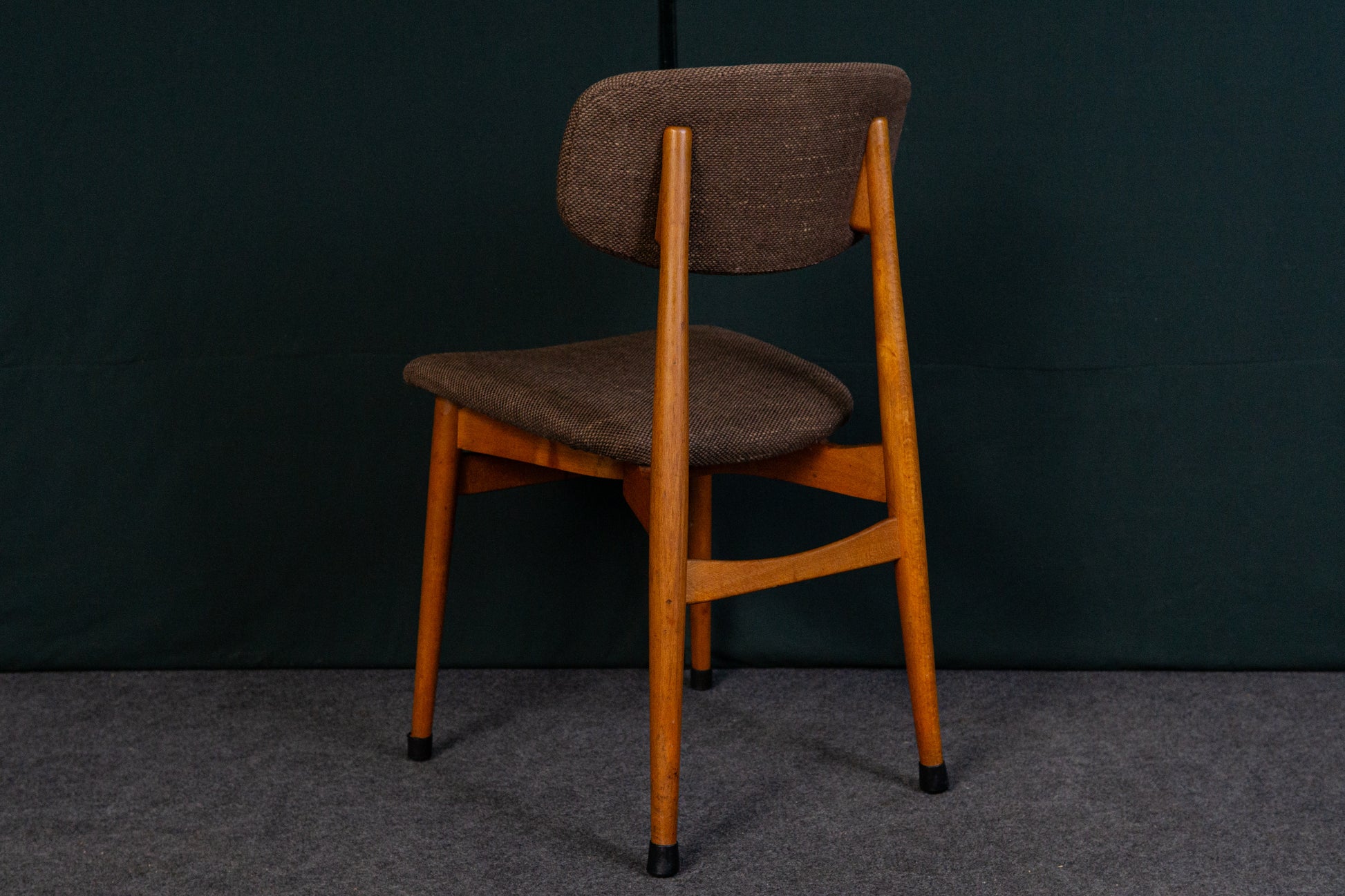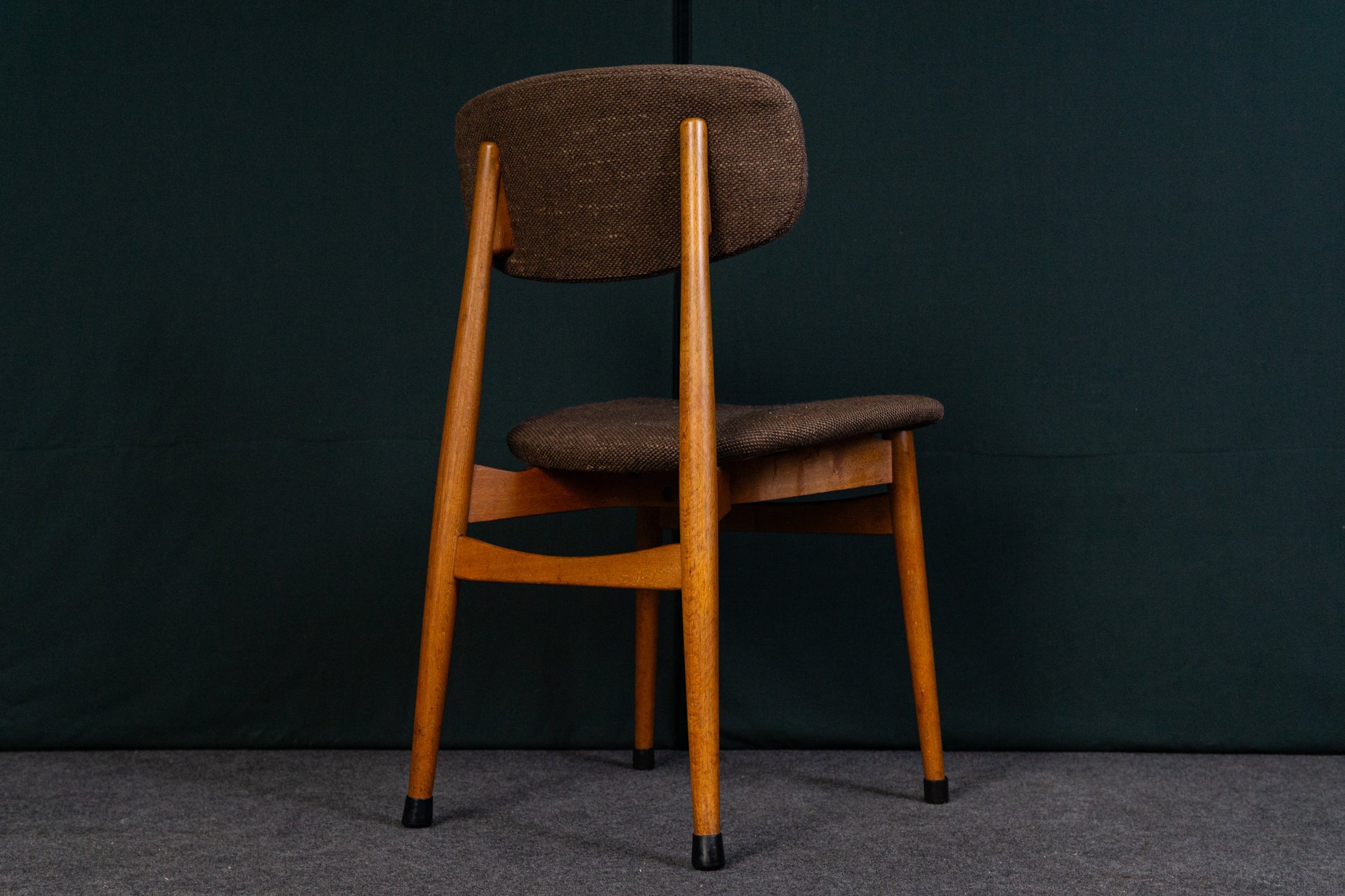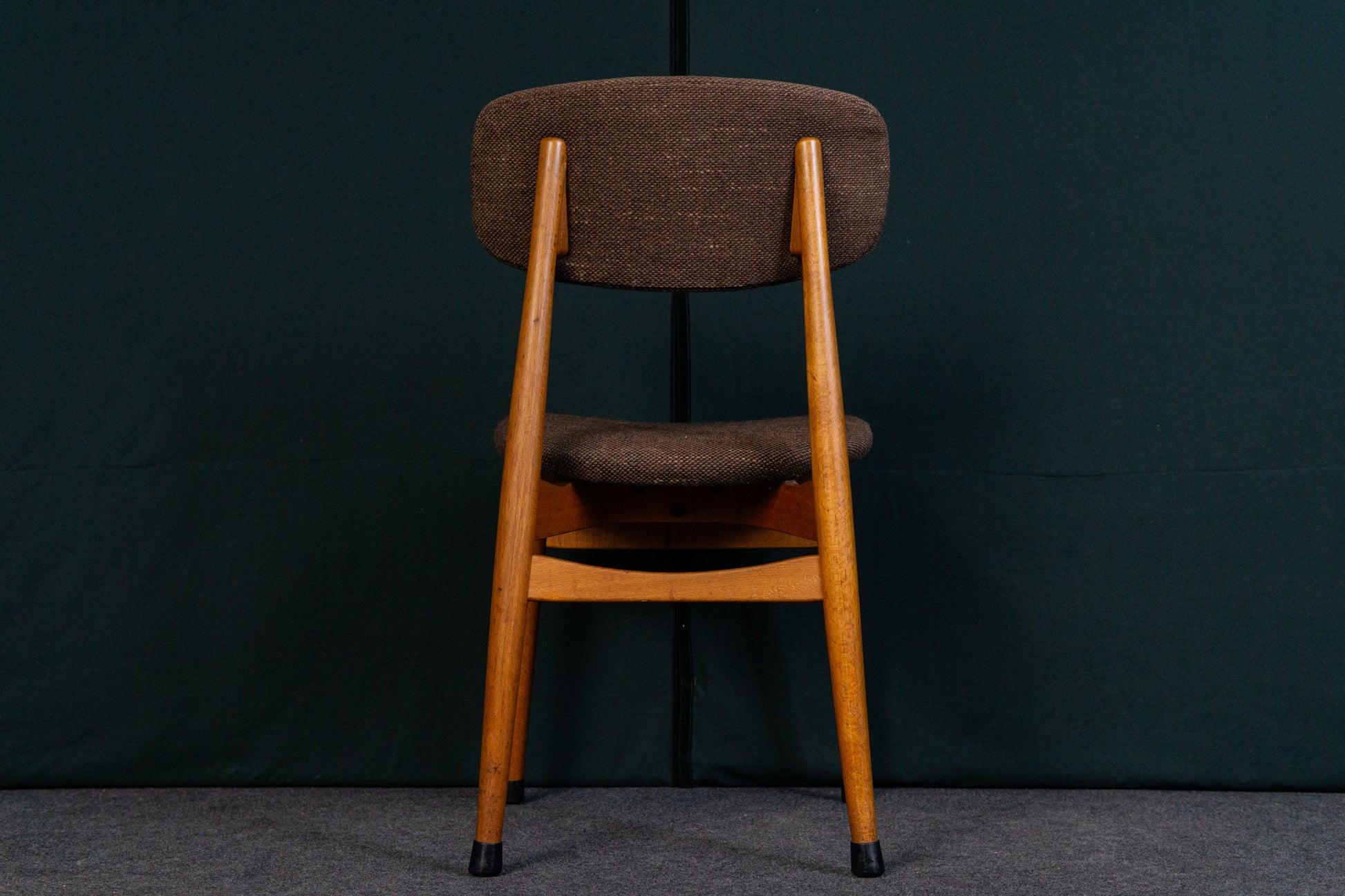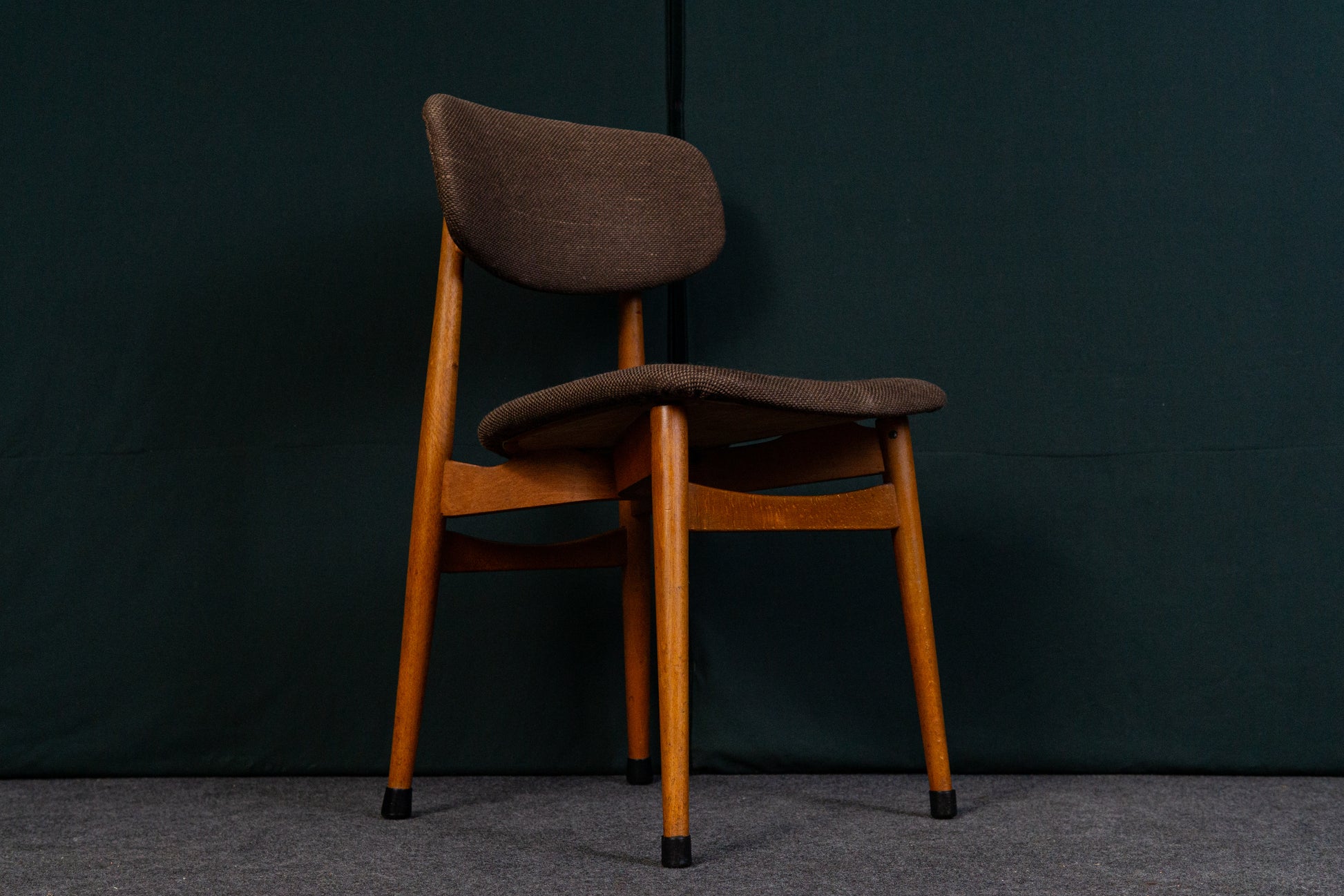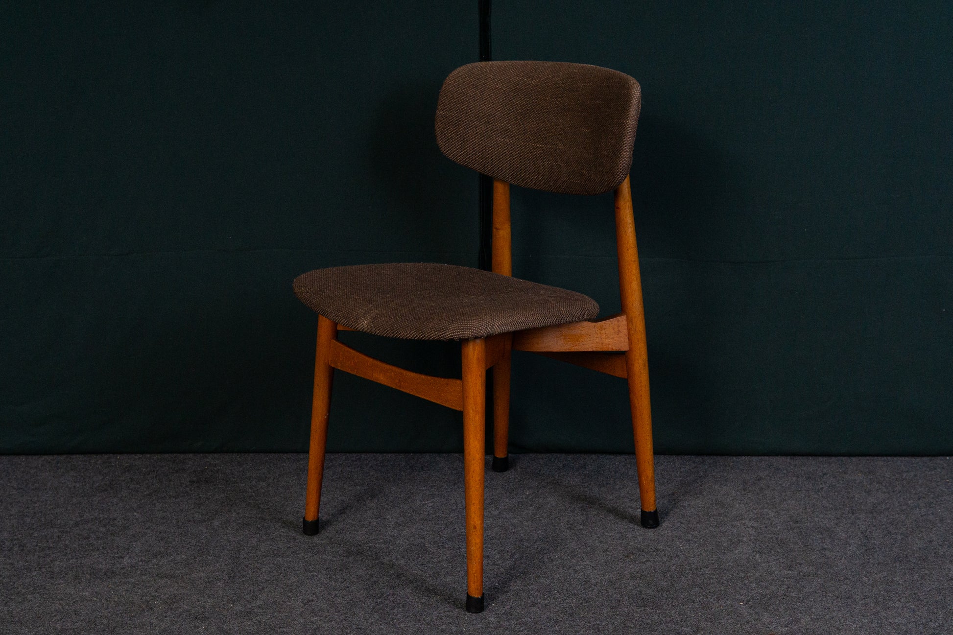 ZUSTAND. guter zustand mit altersbedingten gebrauchsspuren. die holzsitzfläche eines stuhls ist wohl mal etwas nass geworden. das holz unterhalb hat sich verfärbt und das furnier sich leicht gelöst. der stuhl ist allerdings noch voll nutzbar.
