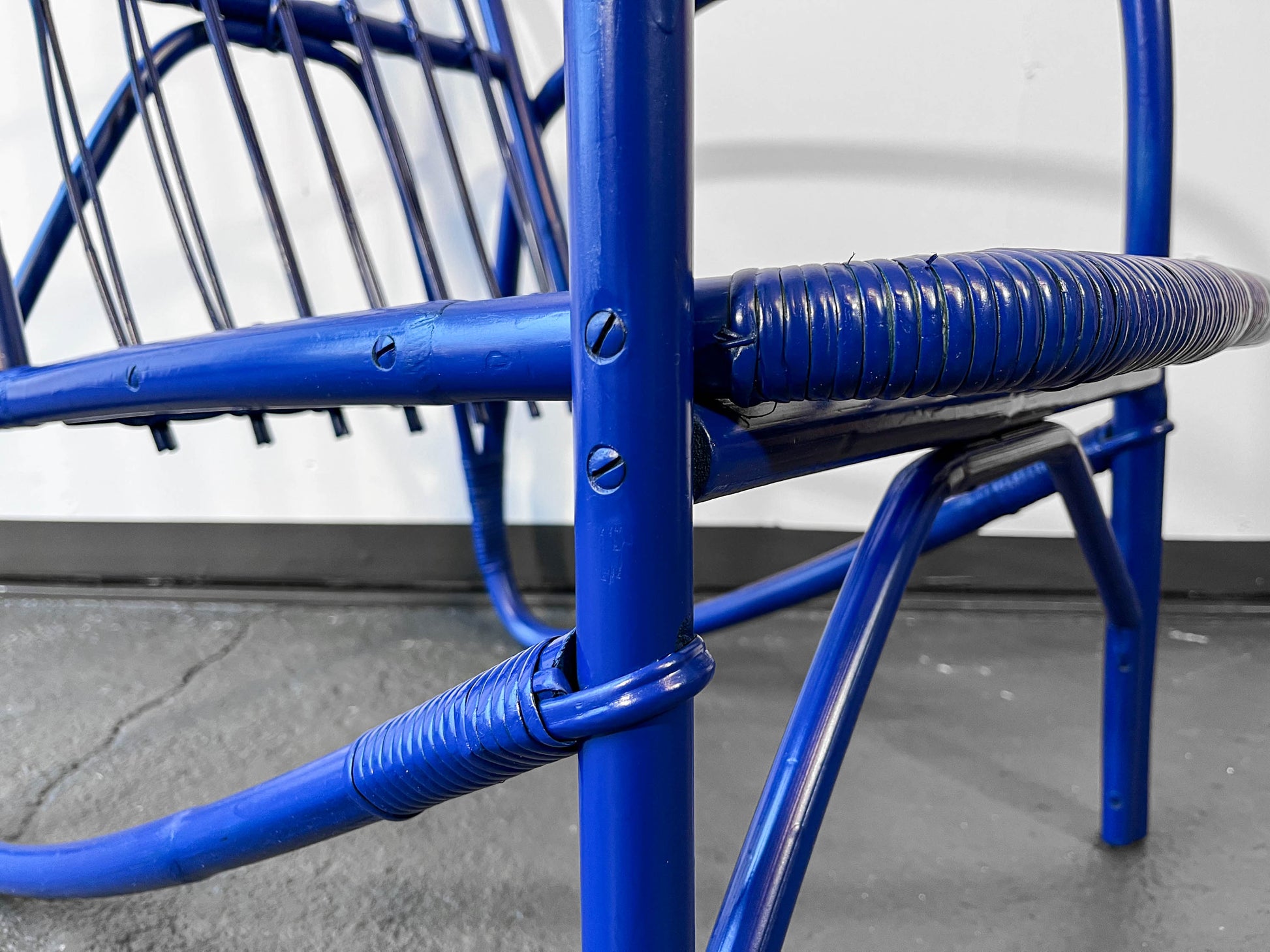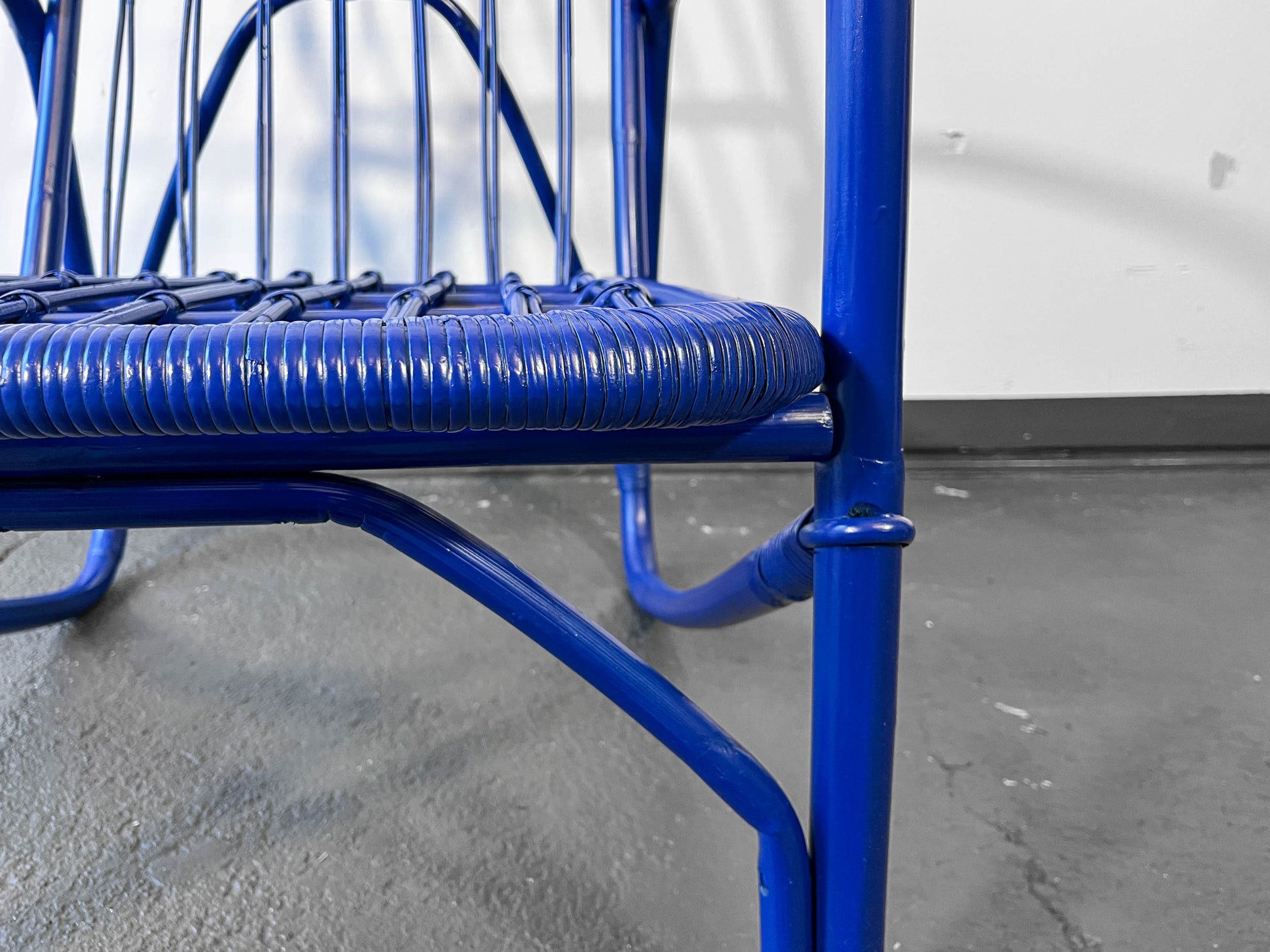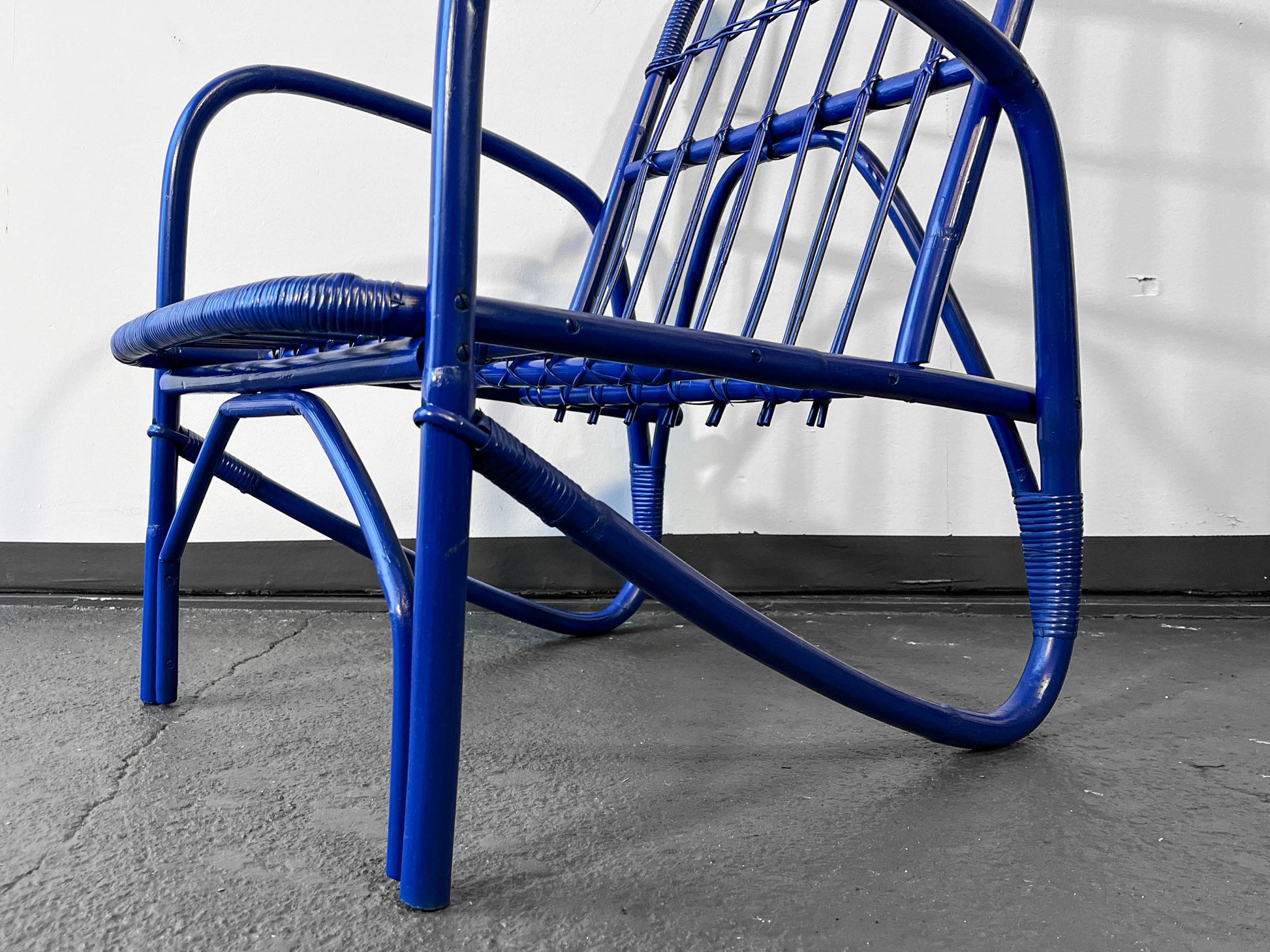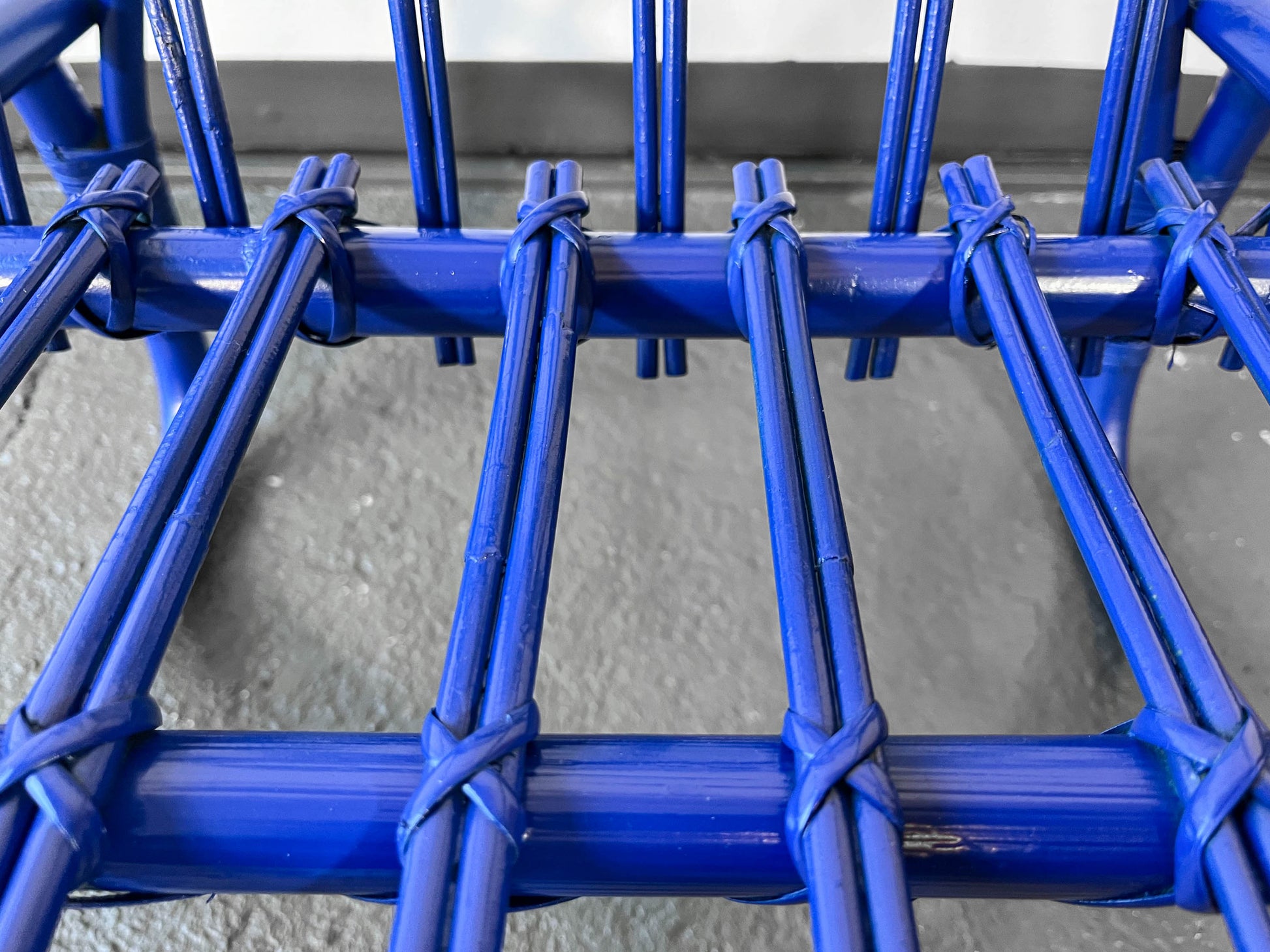 MATERIAL. gebogener bambus · blau glänzend lackiert · neu aufgearbeitet