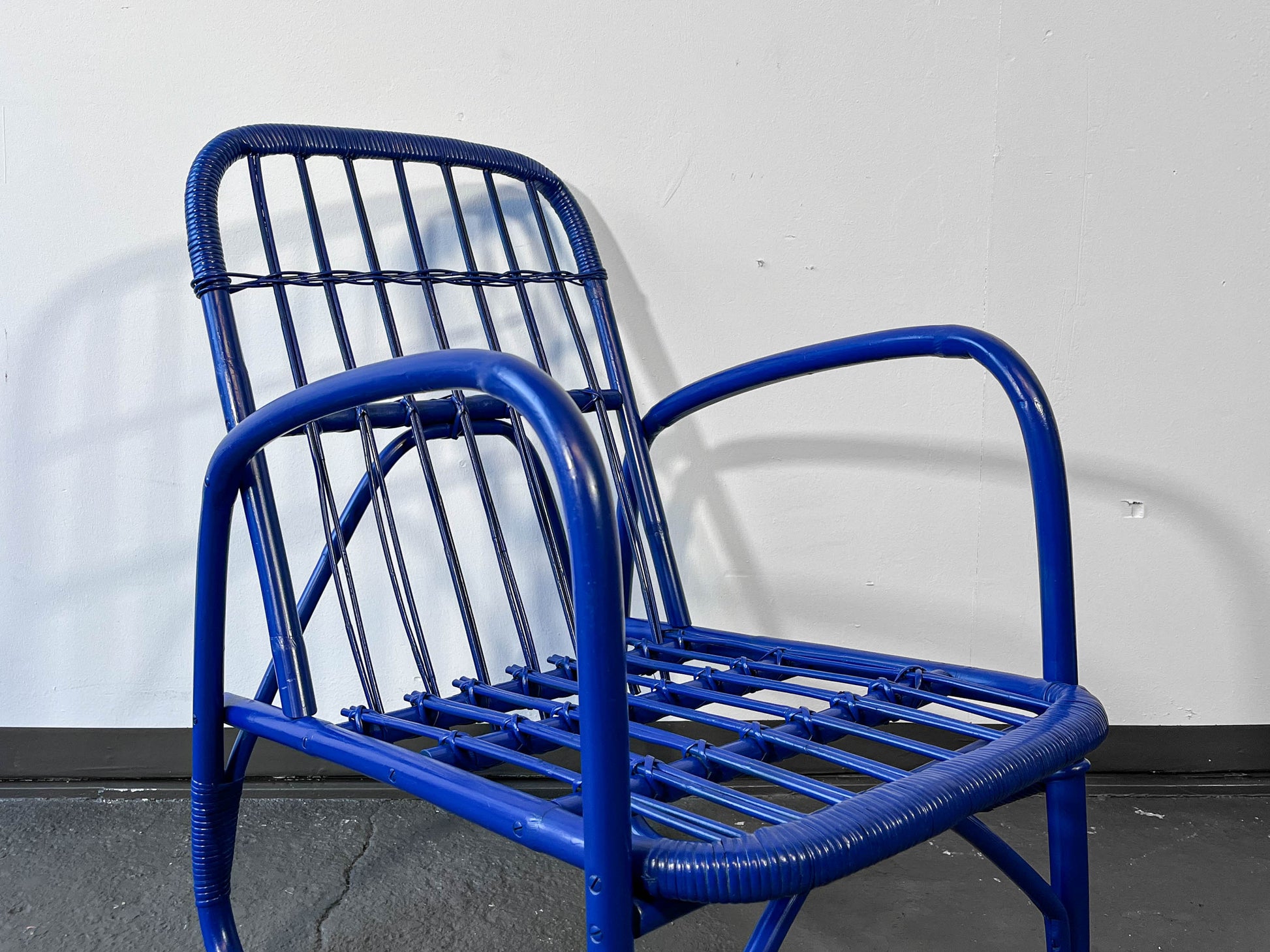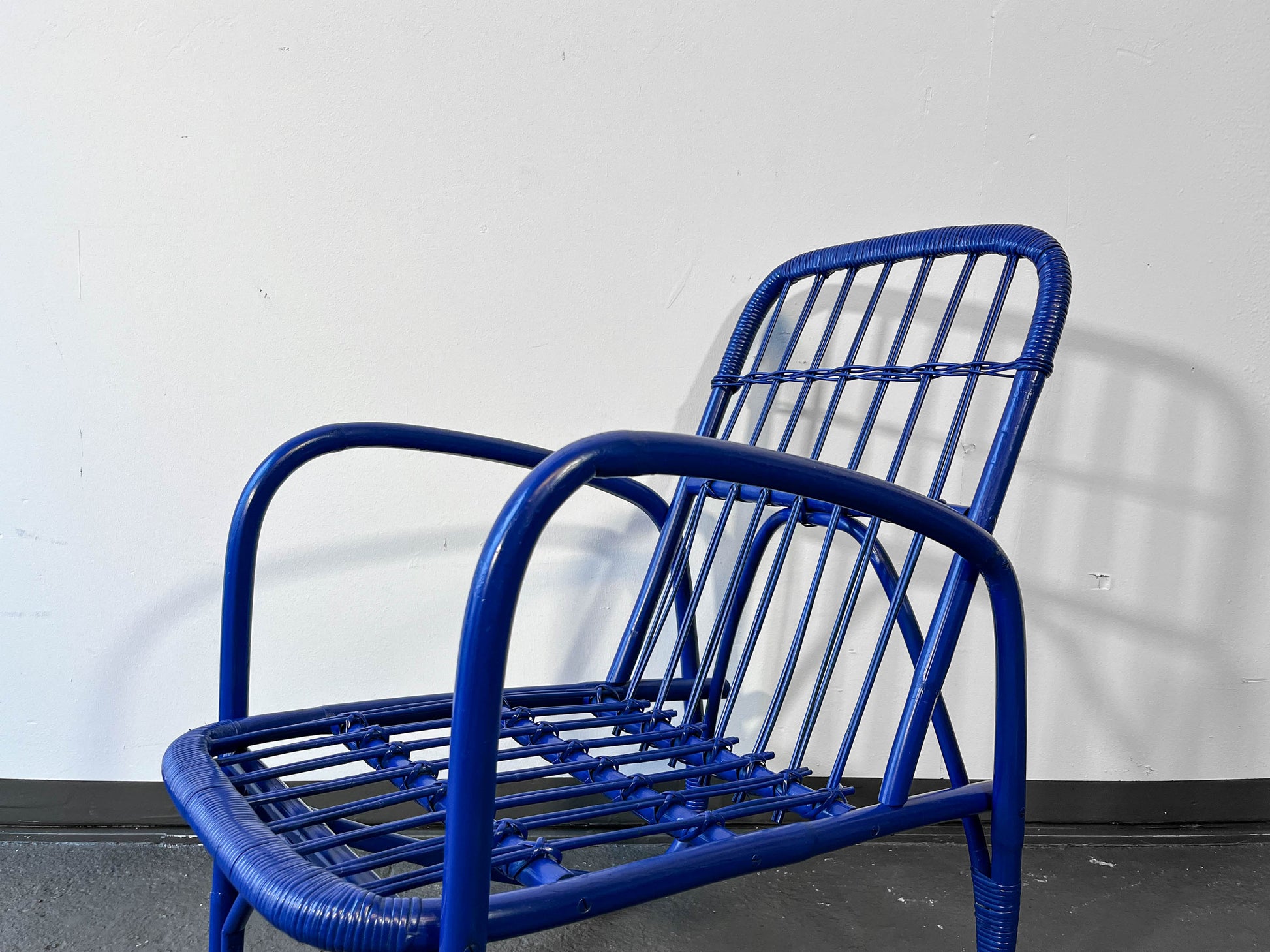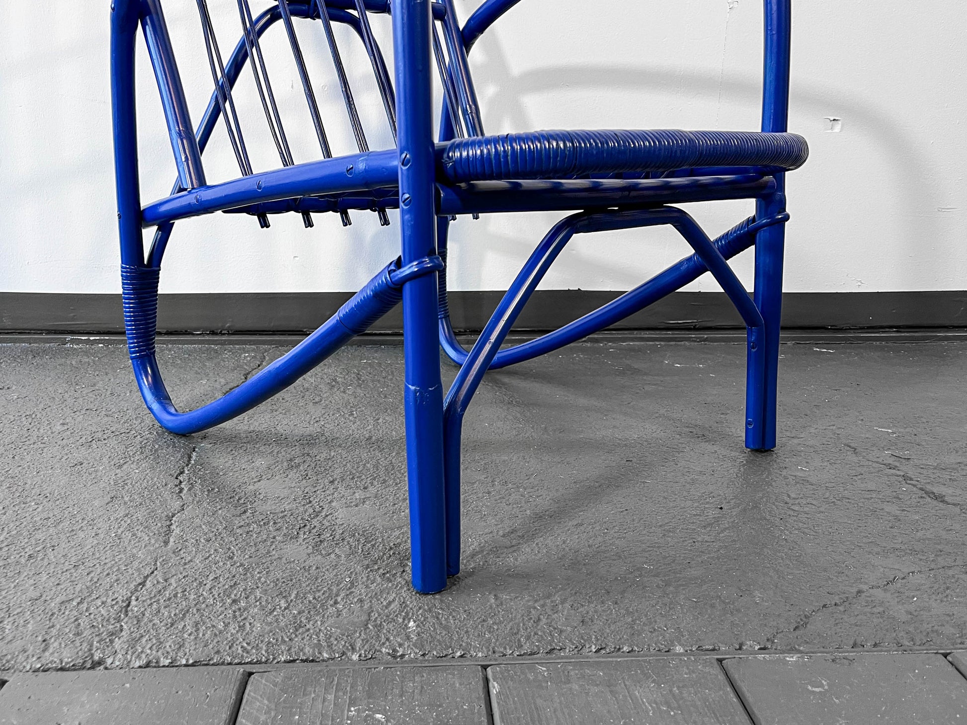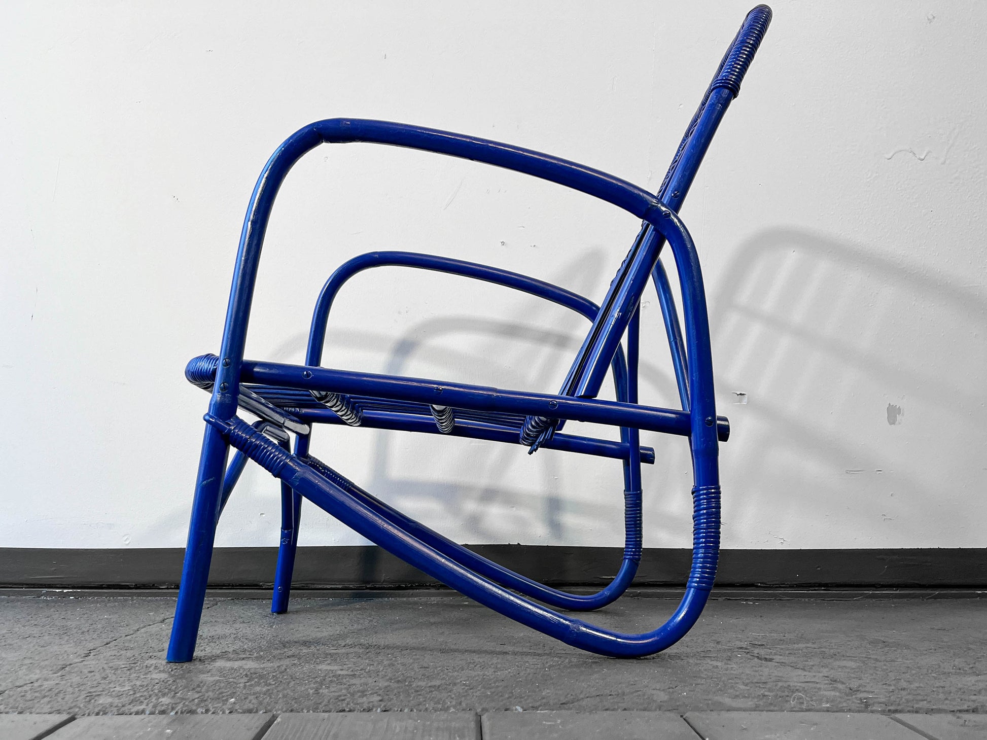 MATERIAL. gebogener bambus · blau glänzend lackiert · neu aufgearbeitet