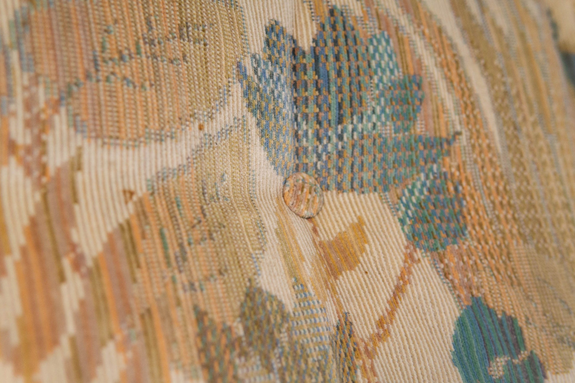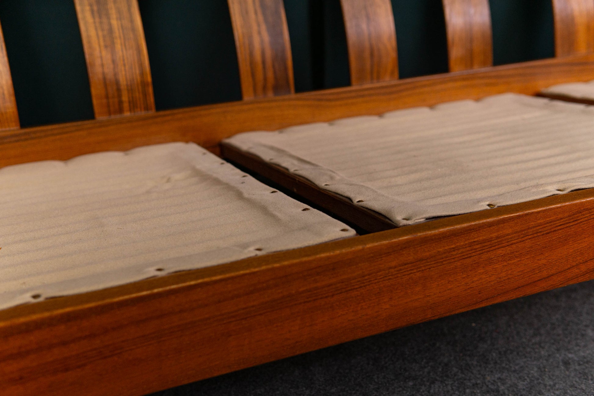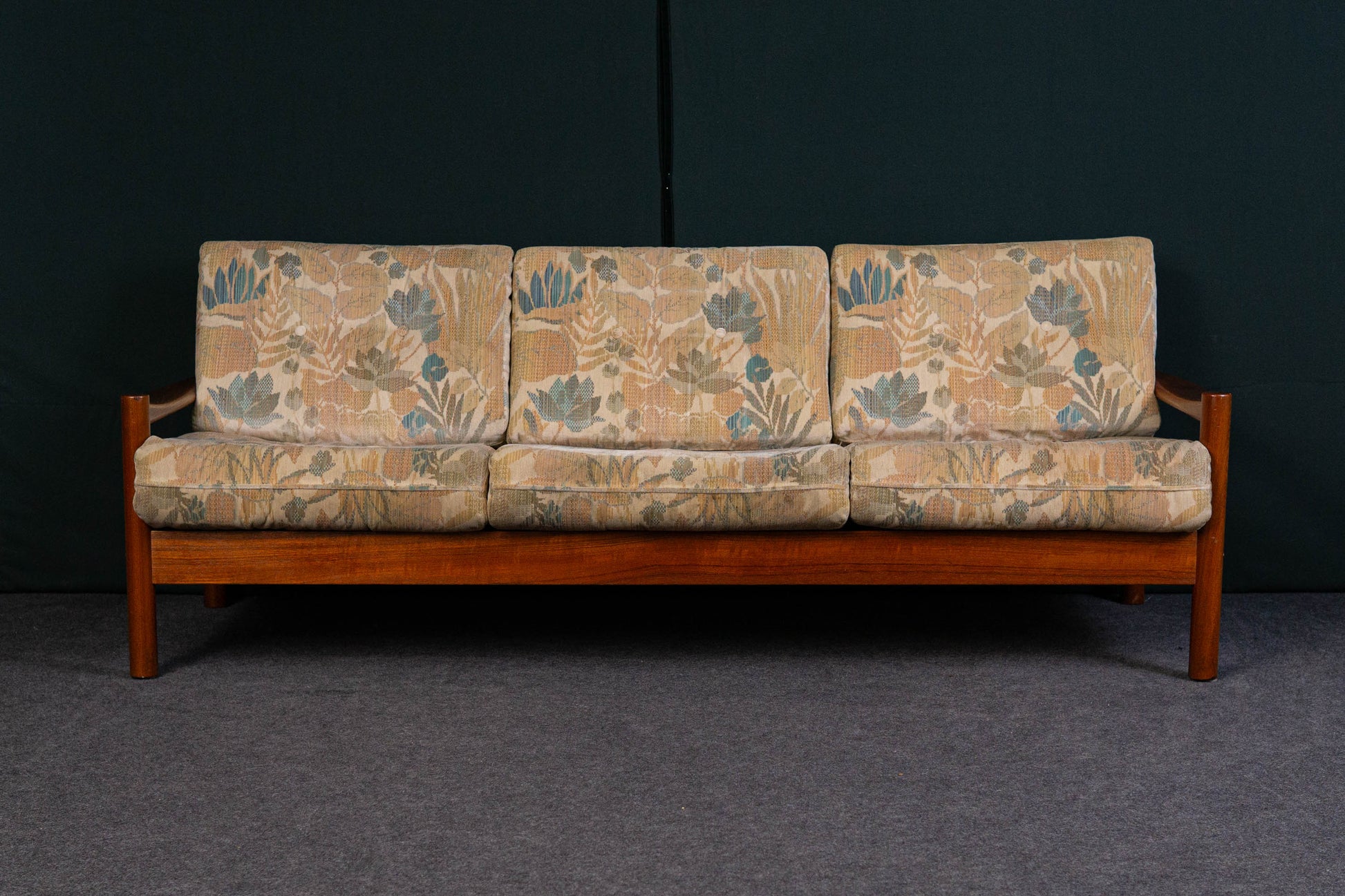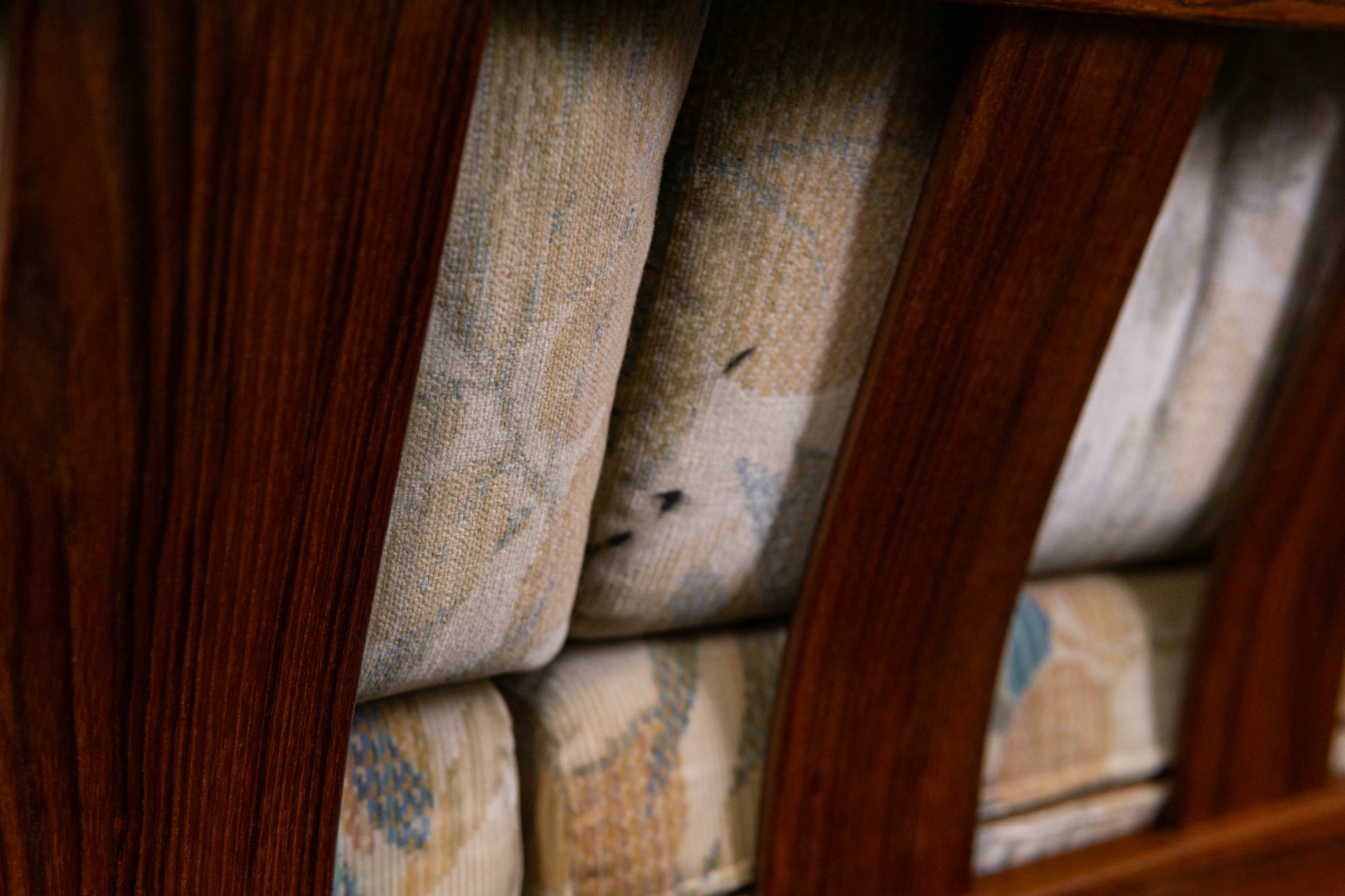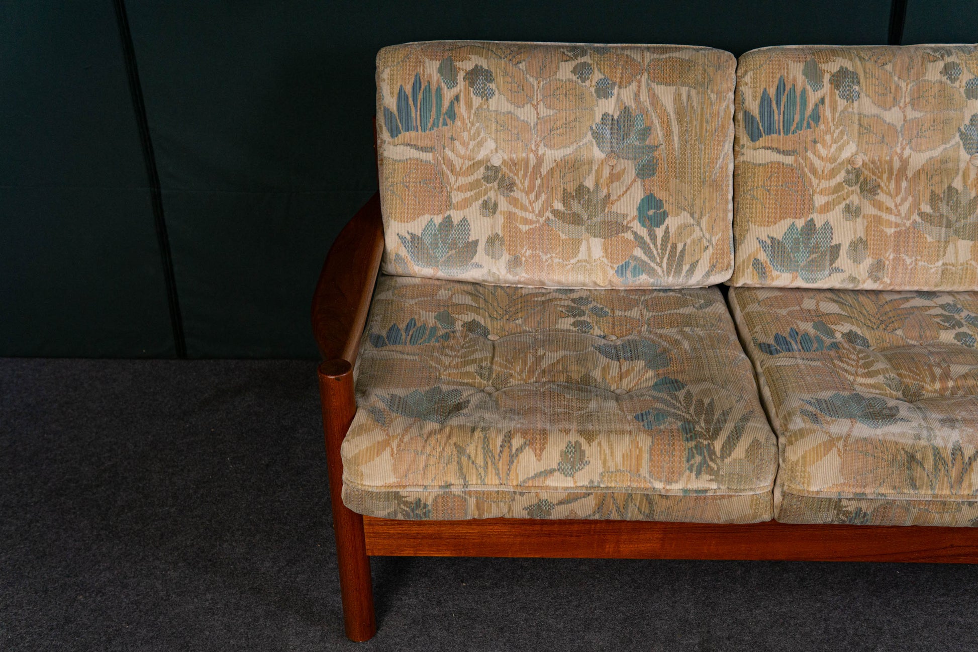 MATERIAL. teakholz · heller floraler stoffbezug · abziehbar