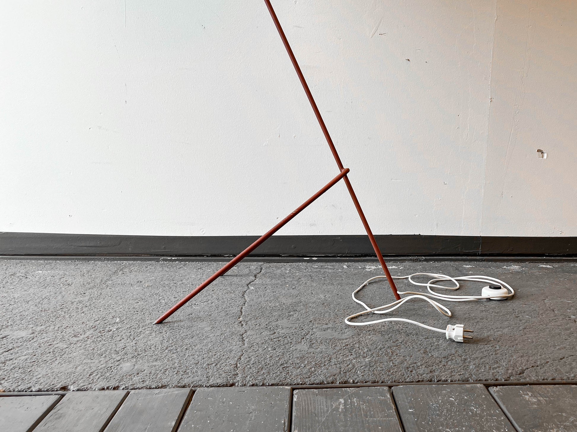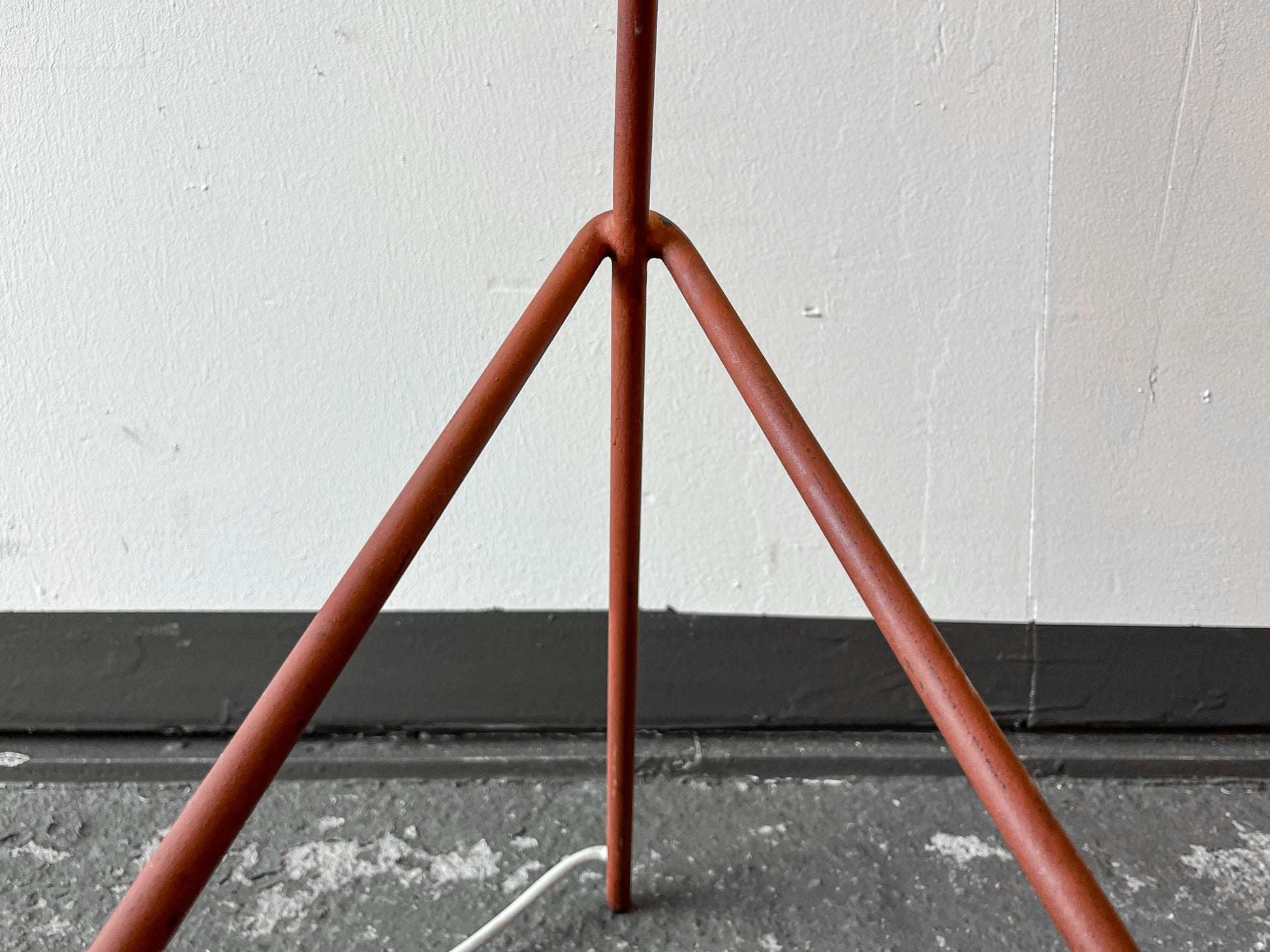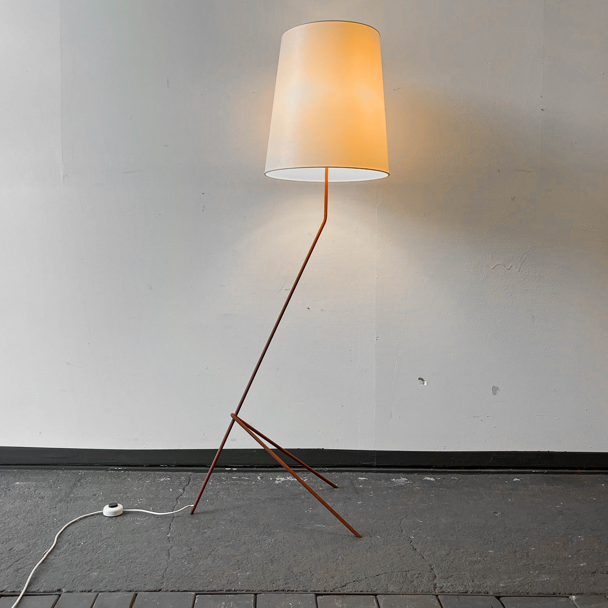 MATERIAL. stahlrohrkonstruktion · rostrotfarben · lampenschirm aus kunststoff · strukturierte oberfläche