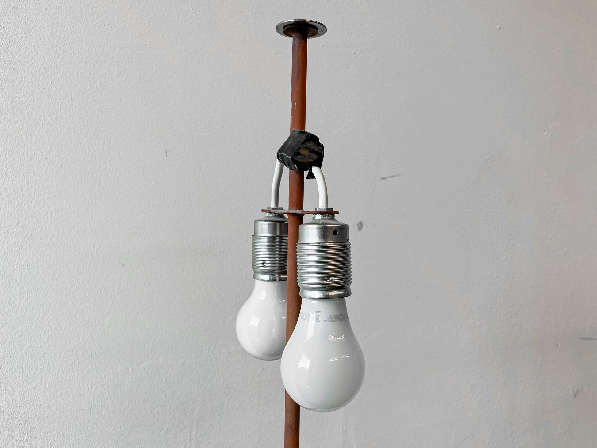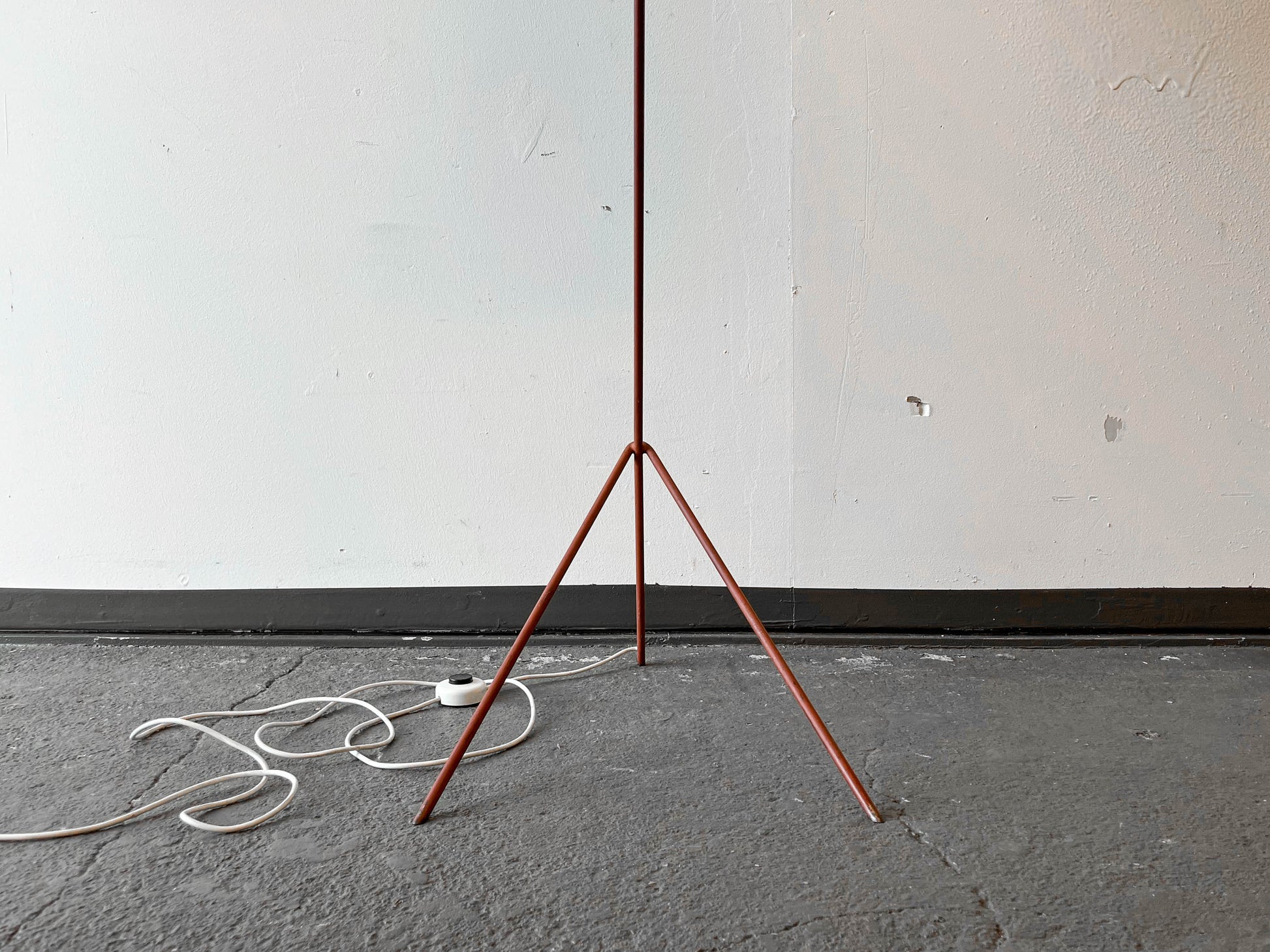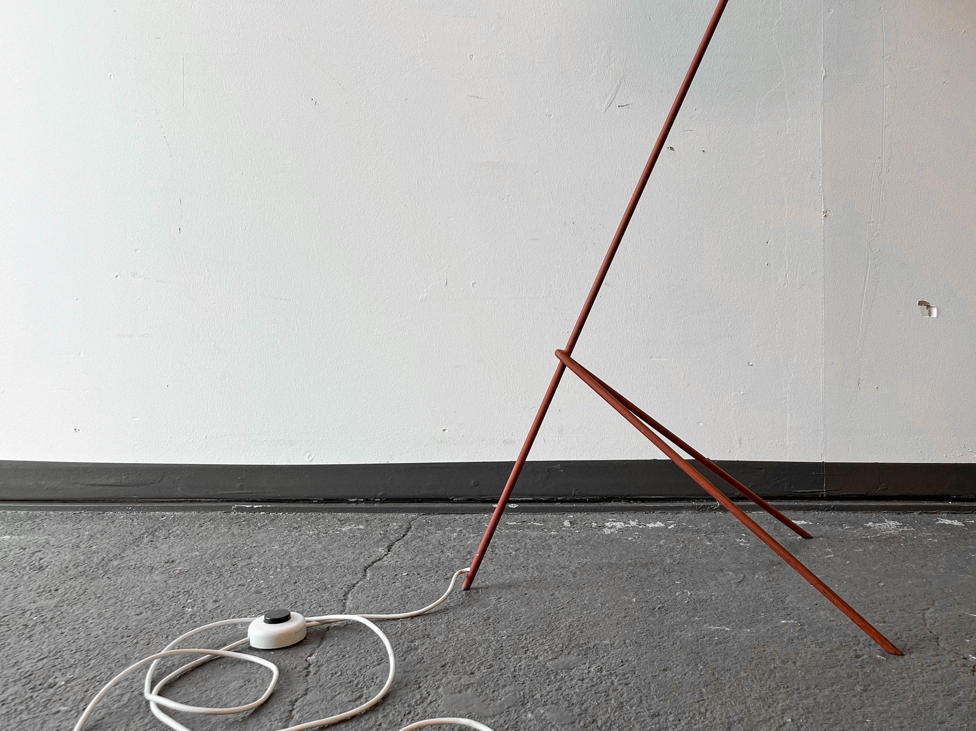 MATERIAL. stahlrohrkonstruktion · rostrotfarben · lampenschirm aus kunststoff · strukturierte oberfläche