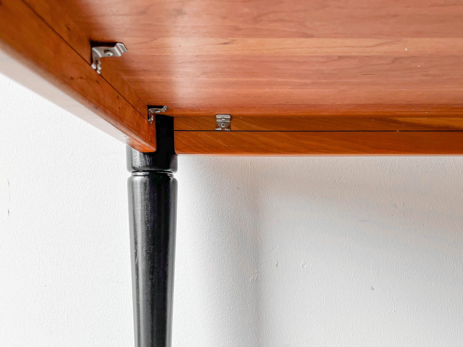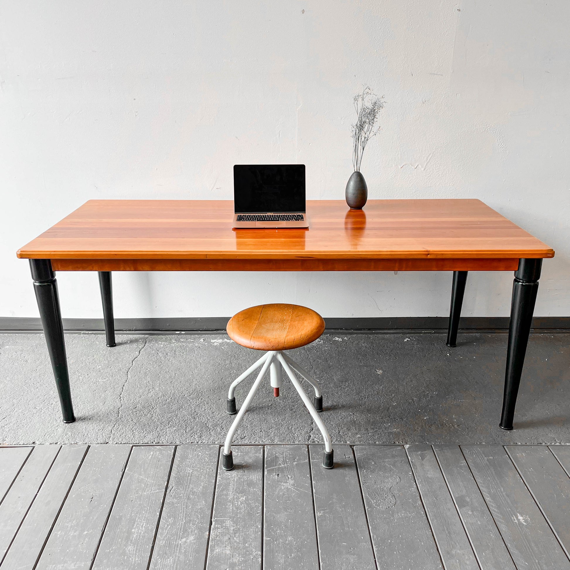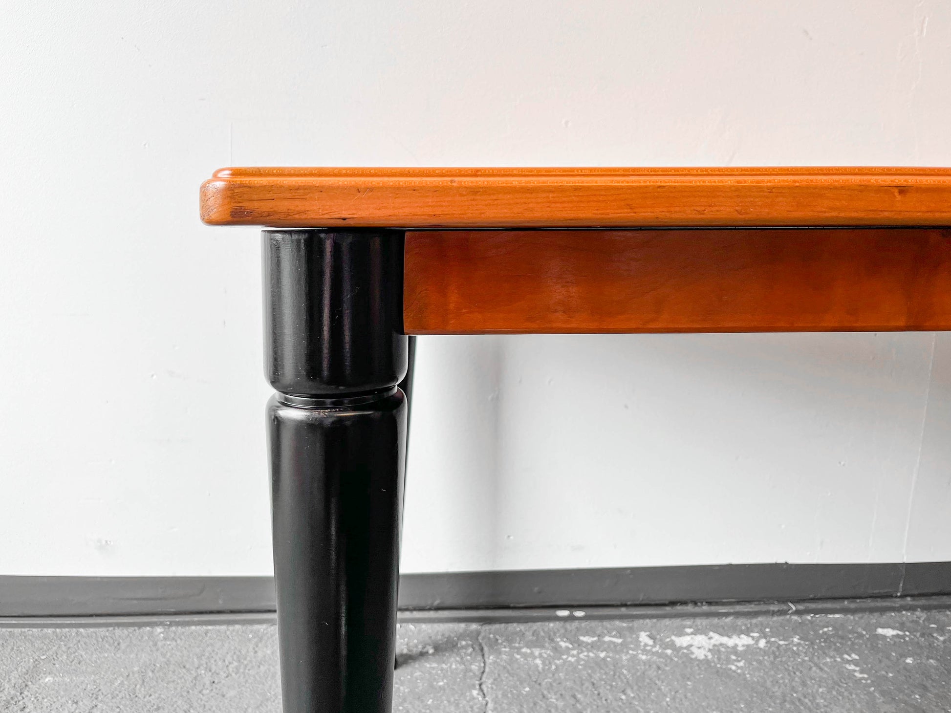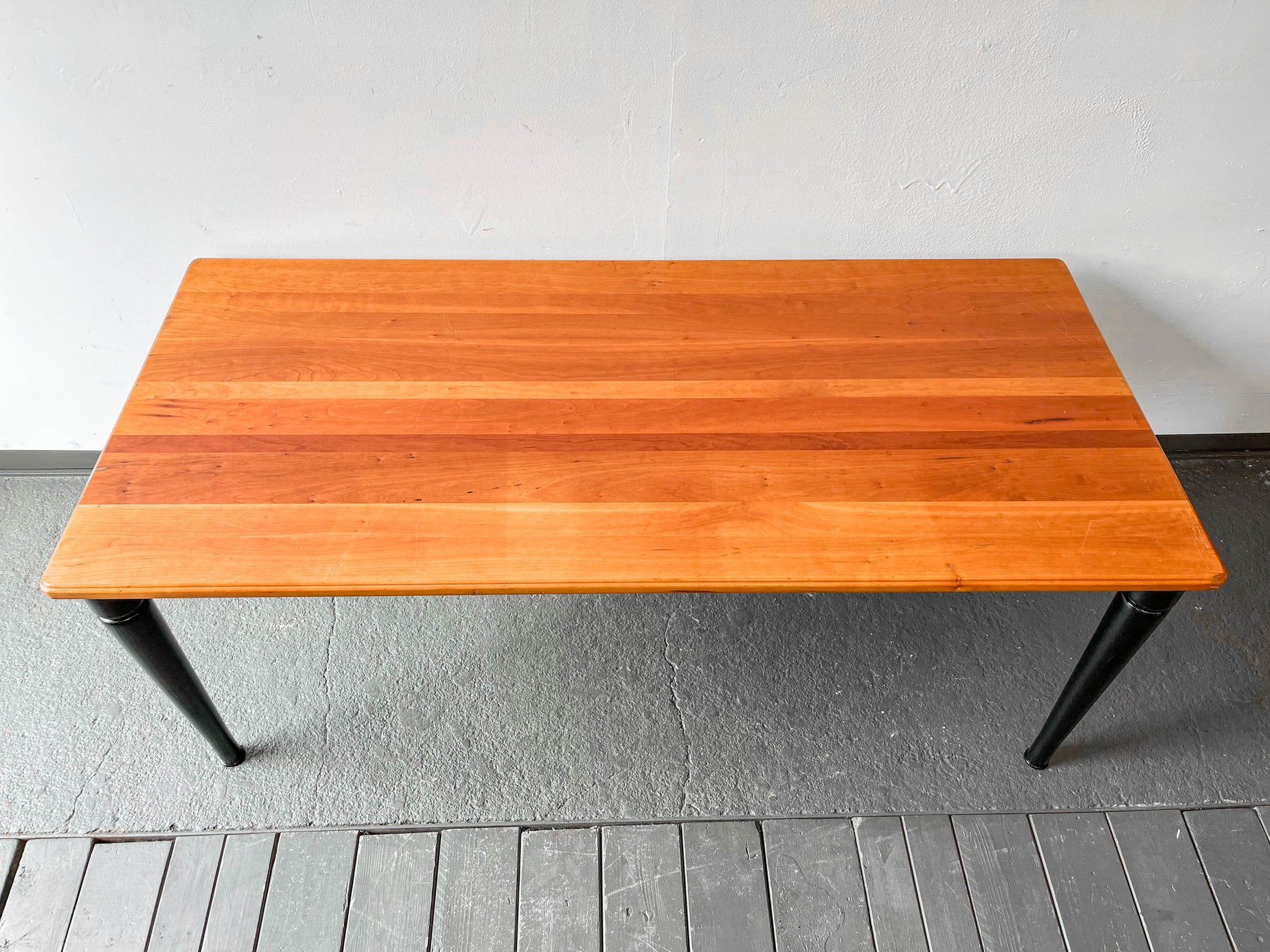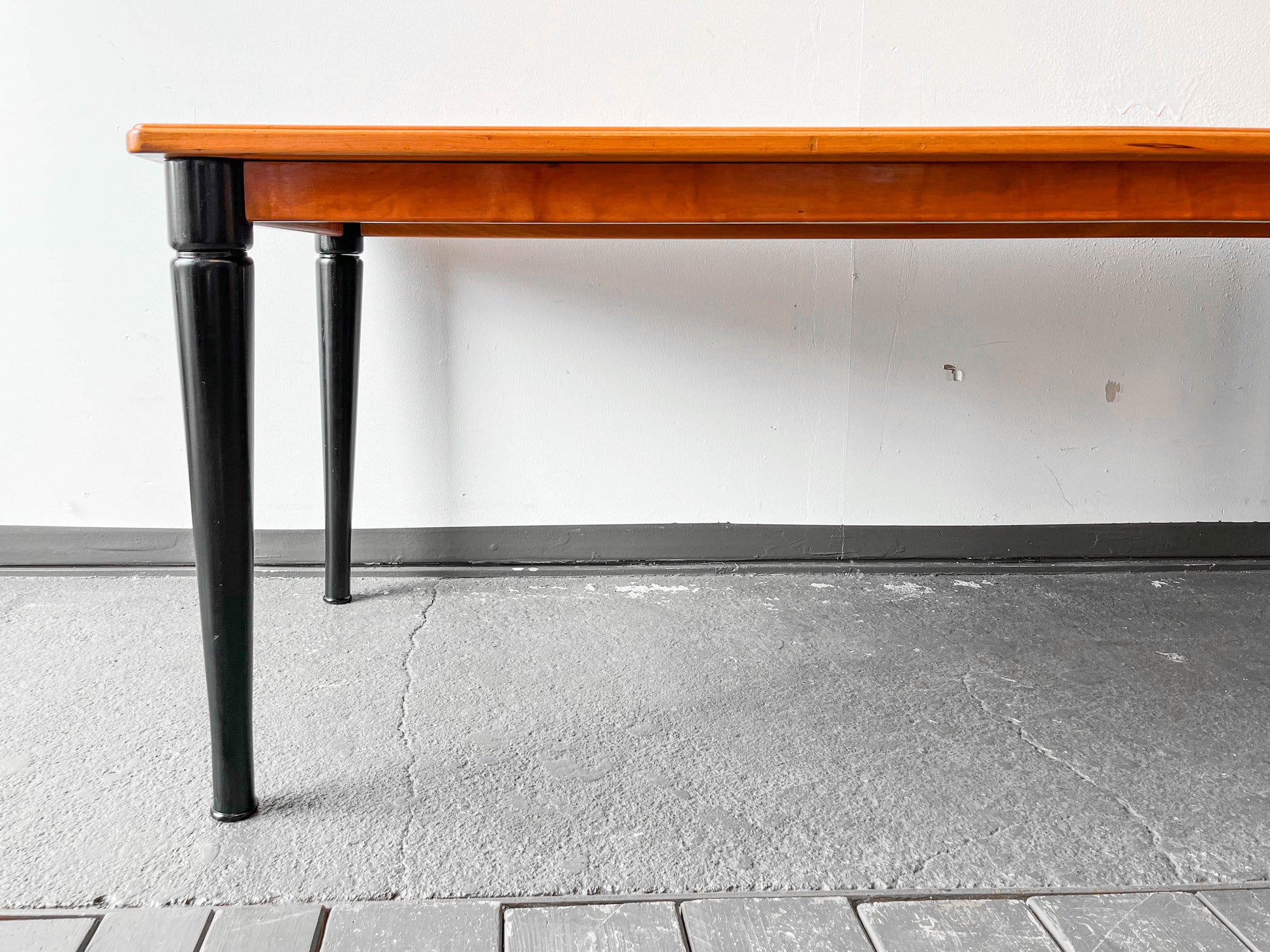 MATERIAL. tischplatte aus kirsche massiv · oberfläche lackiert · beine massivholz · schwarz lackiert