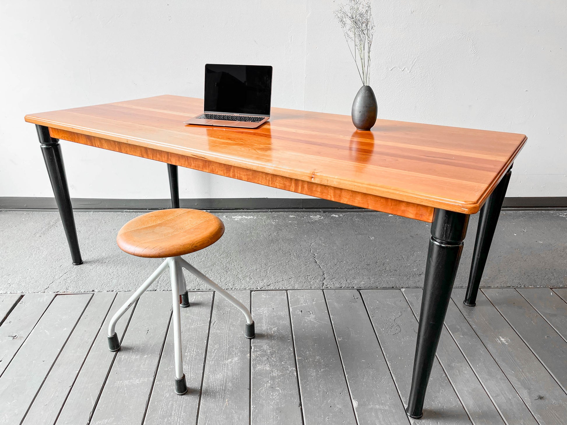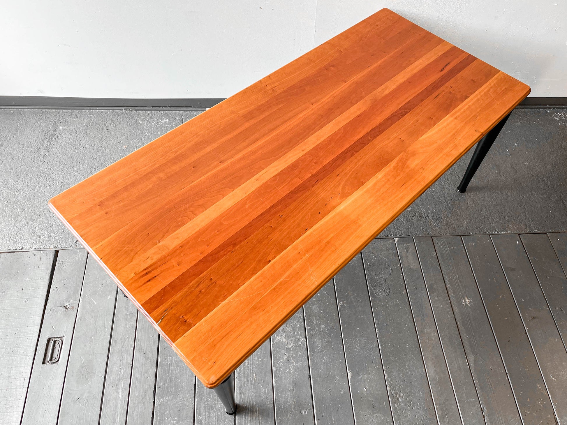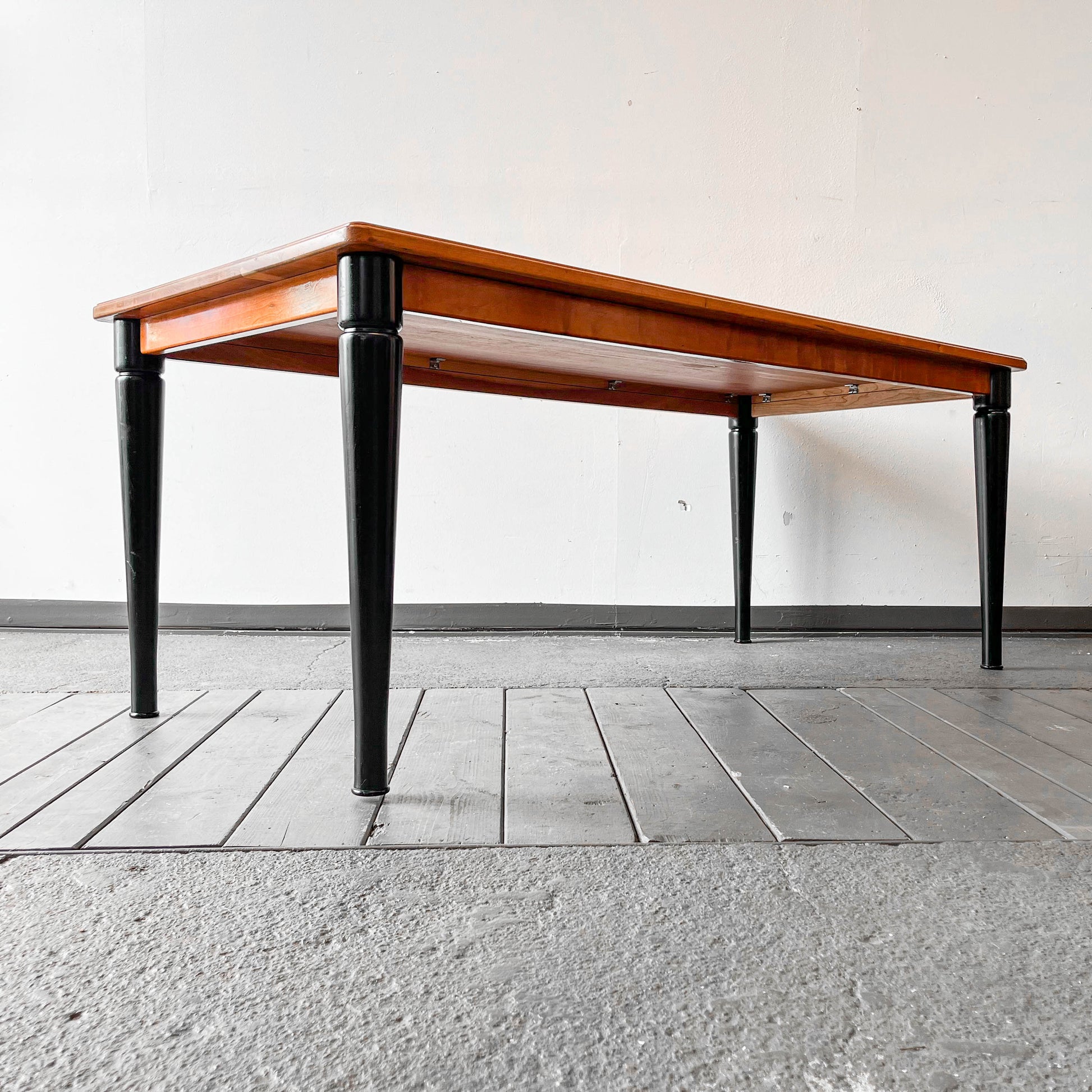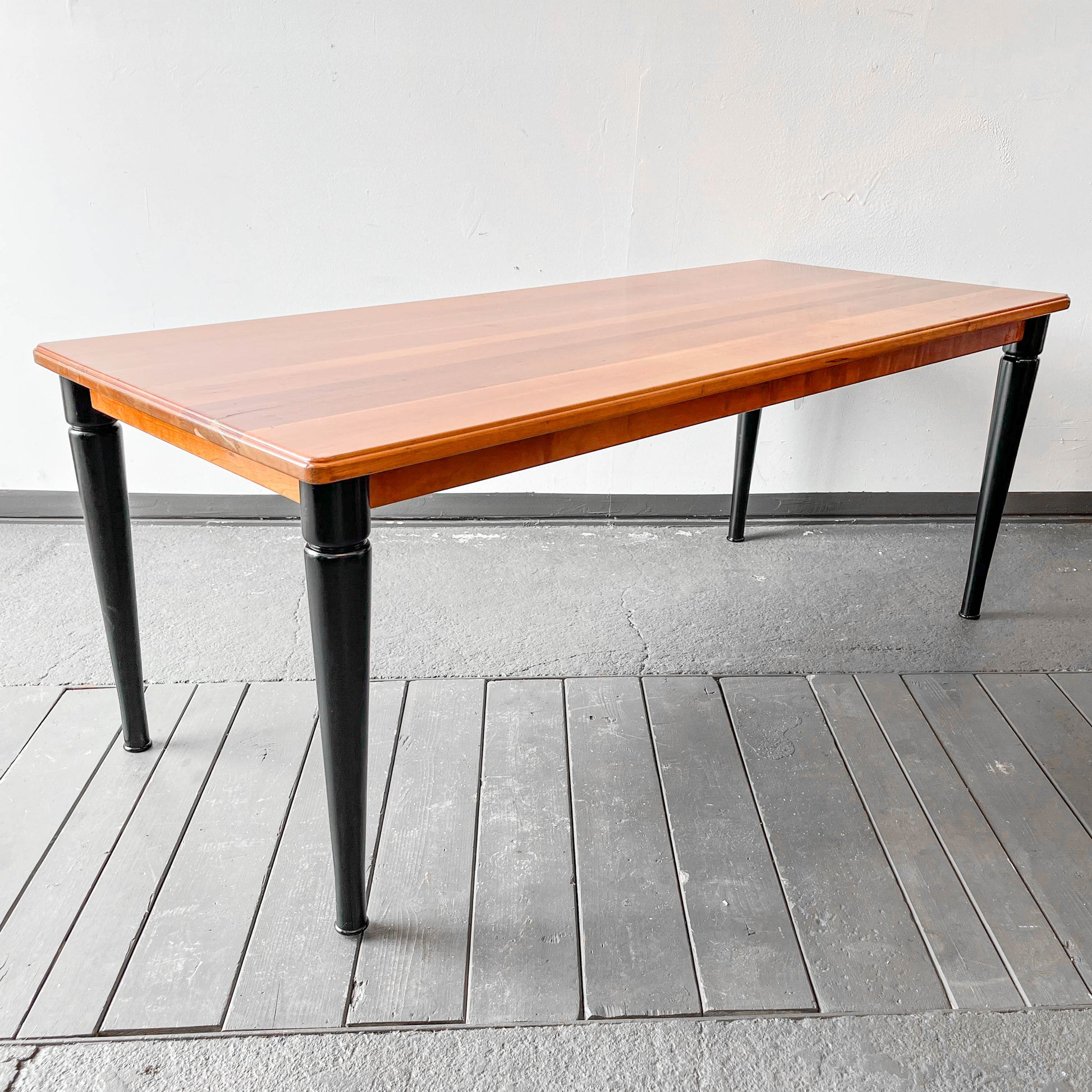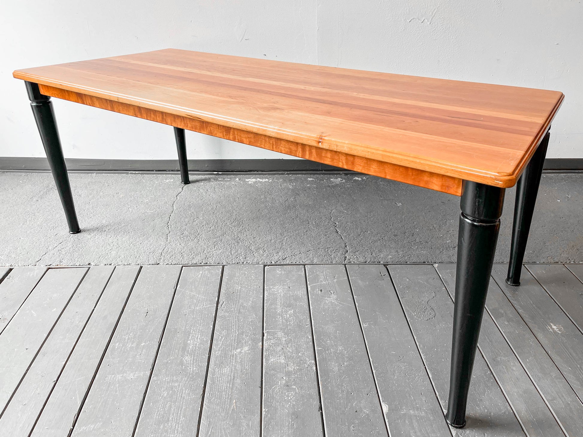 MATERIAL. tischplatte aus kirsche massiv · oberfläche lackiert · beine massivholz · schwarz lackiert