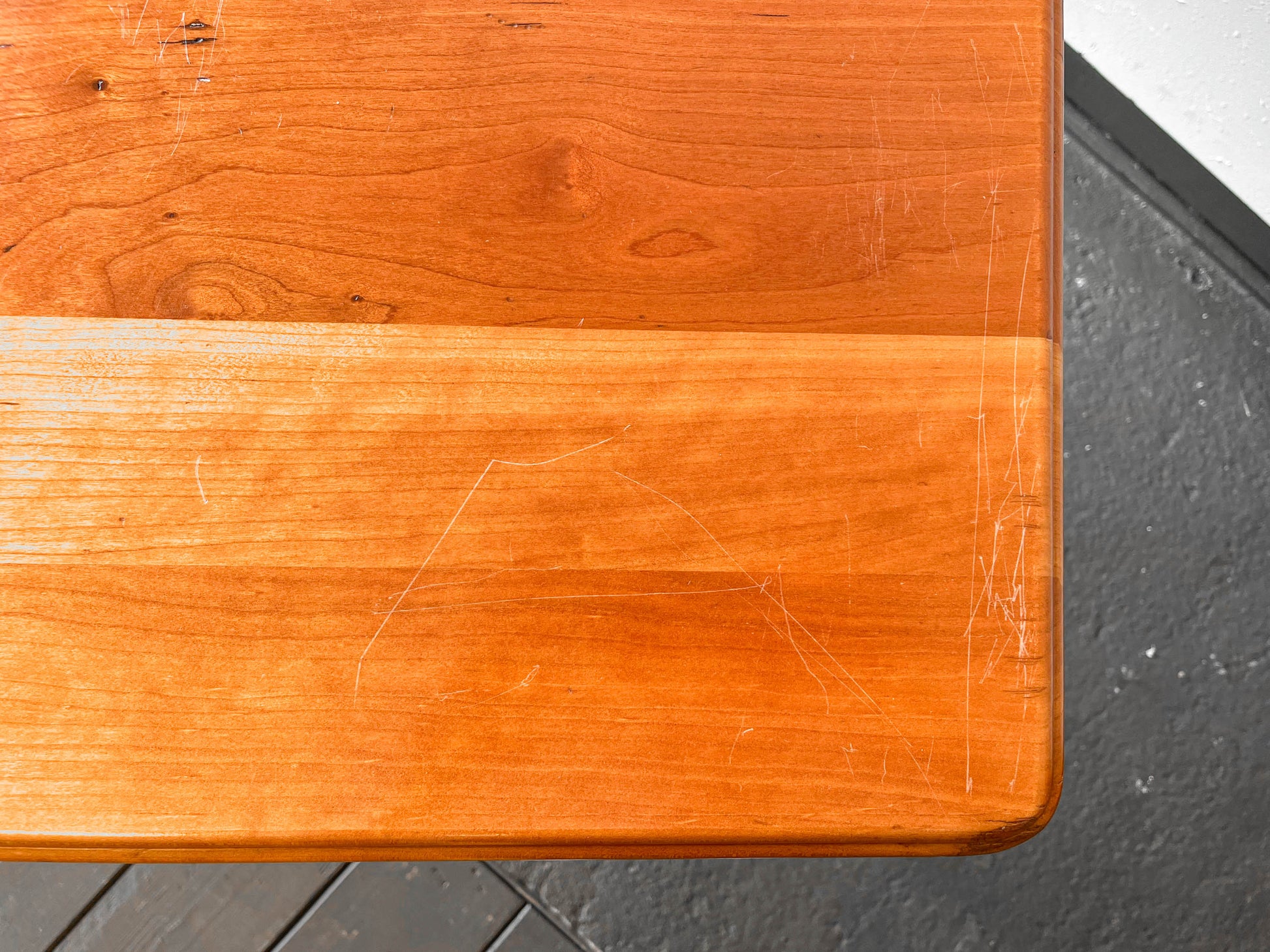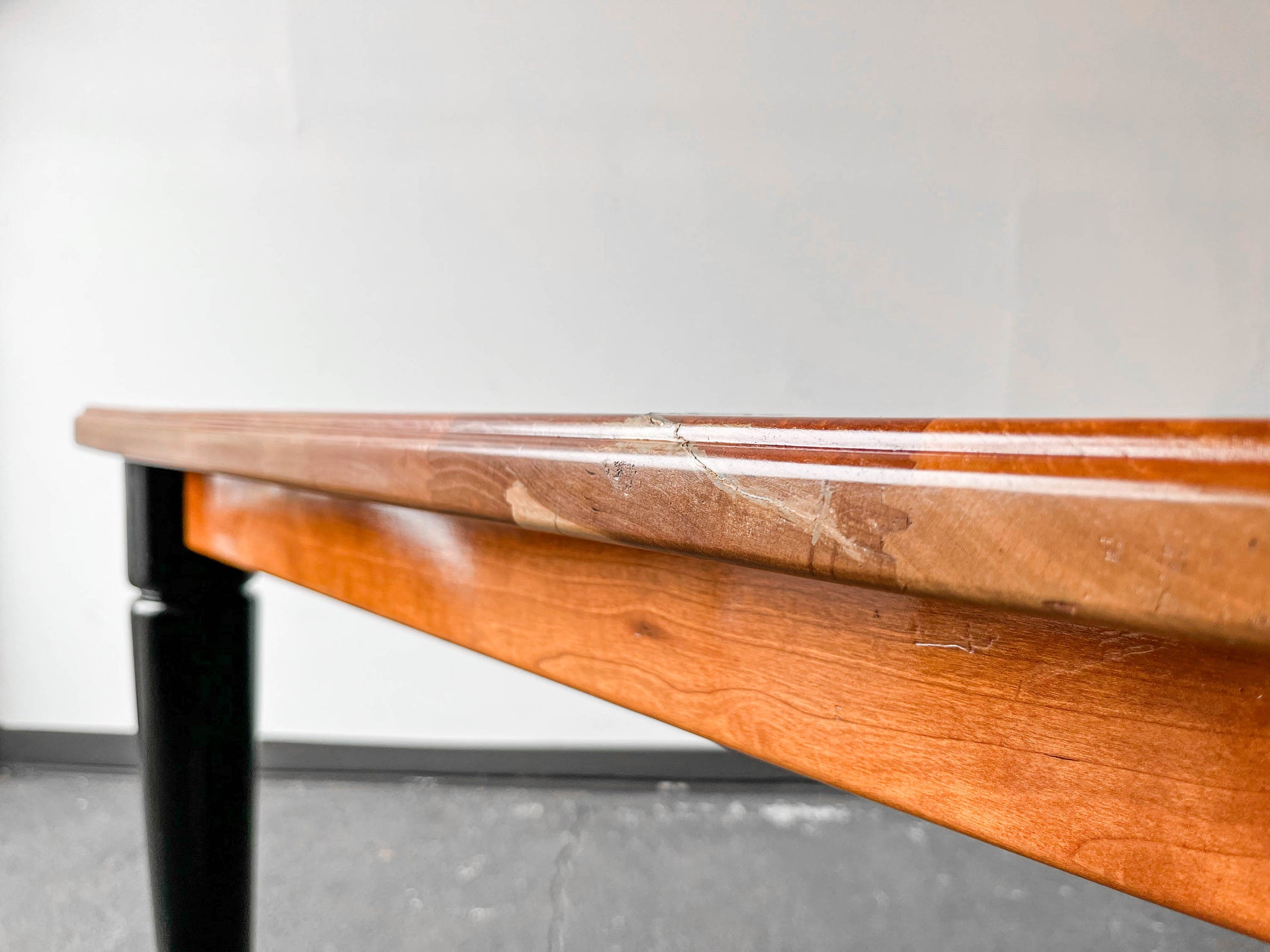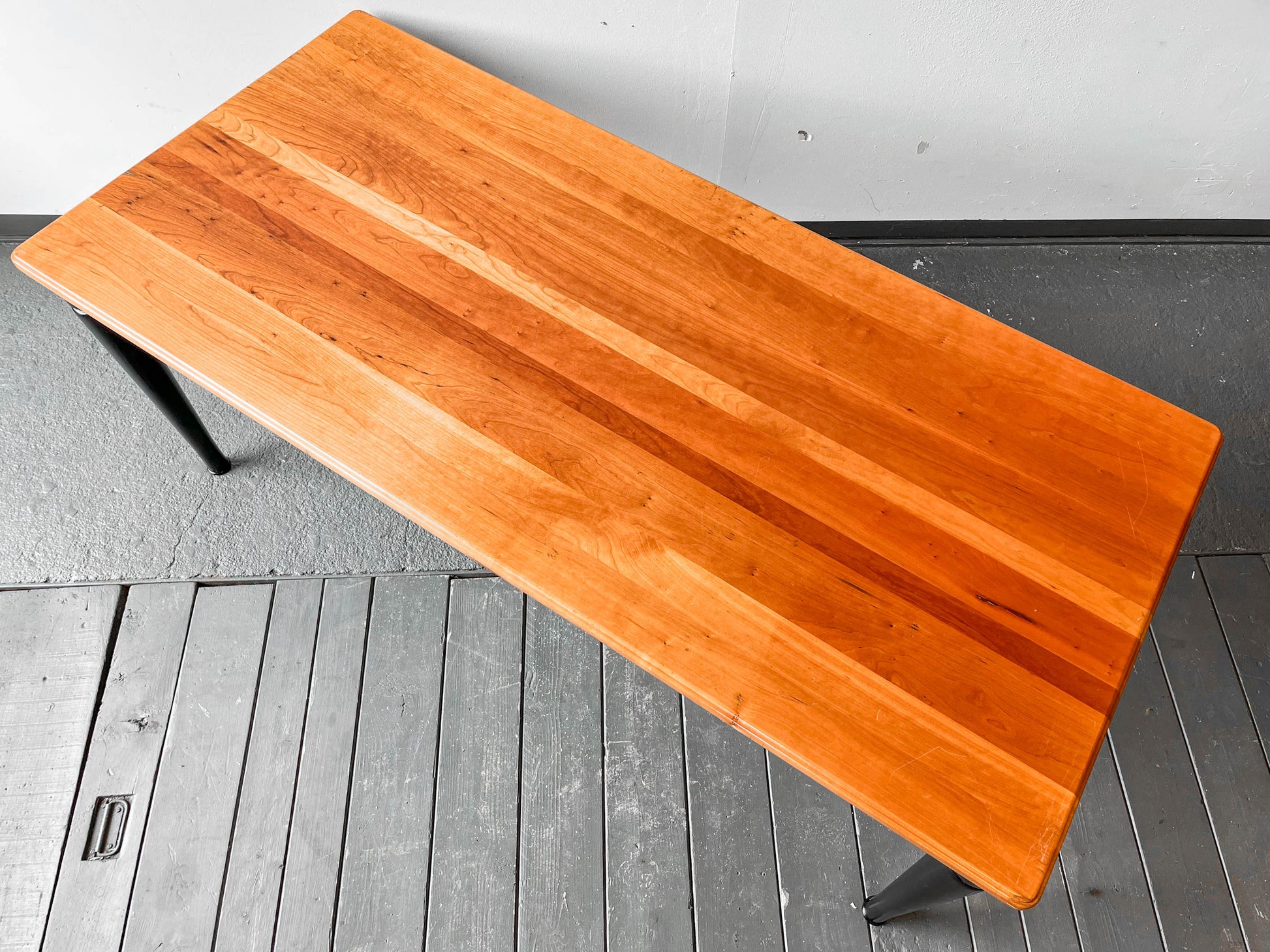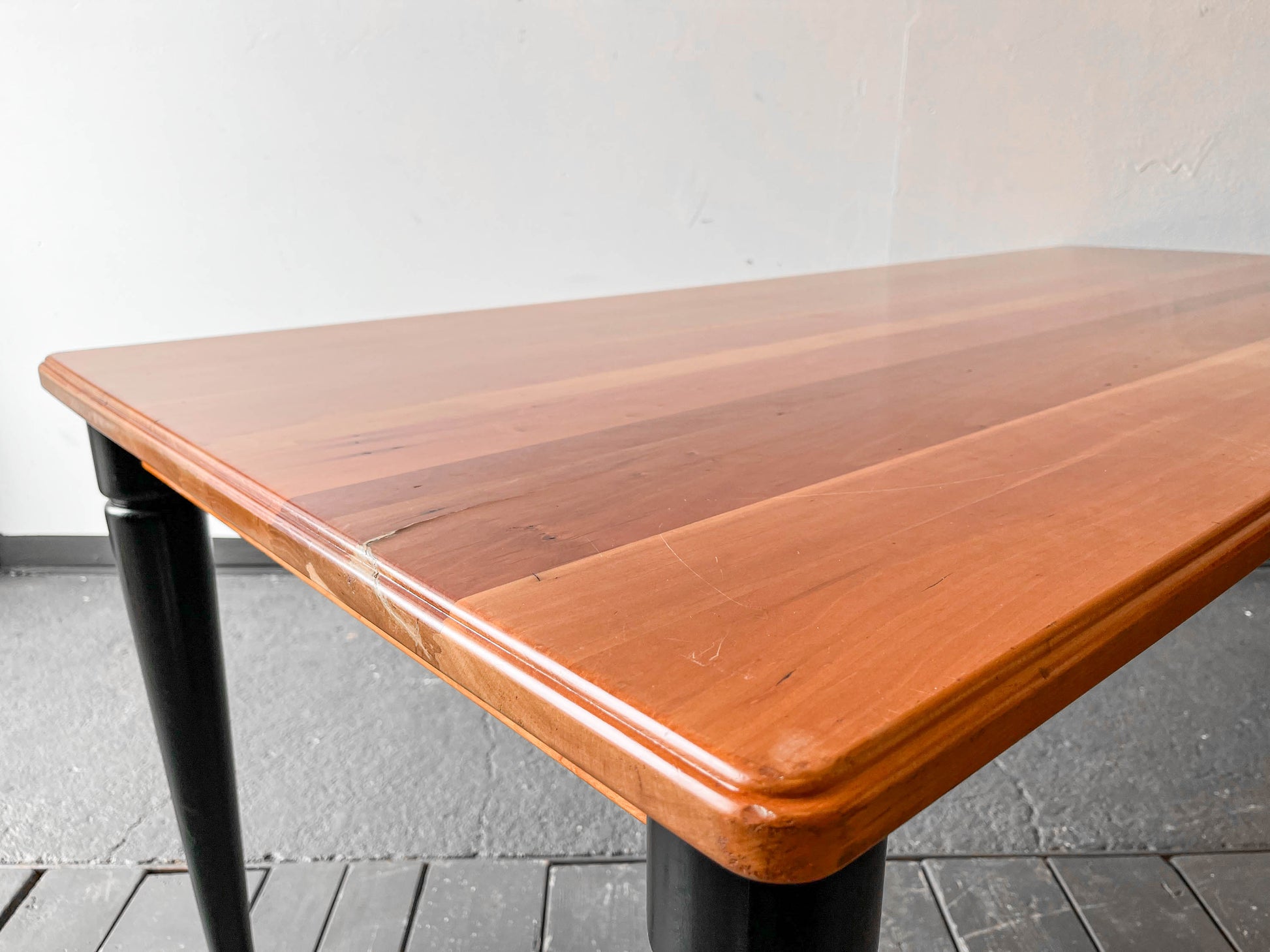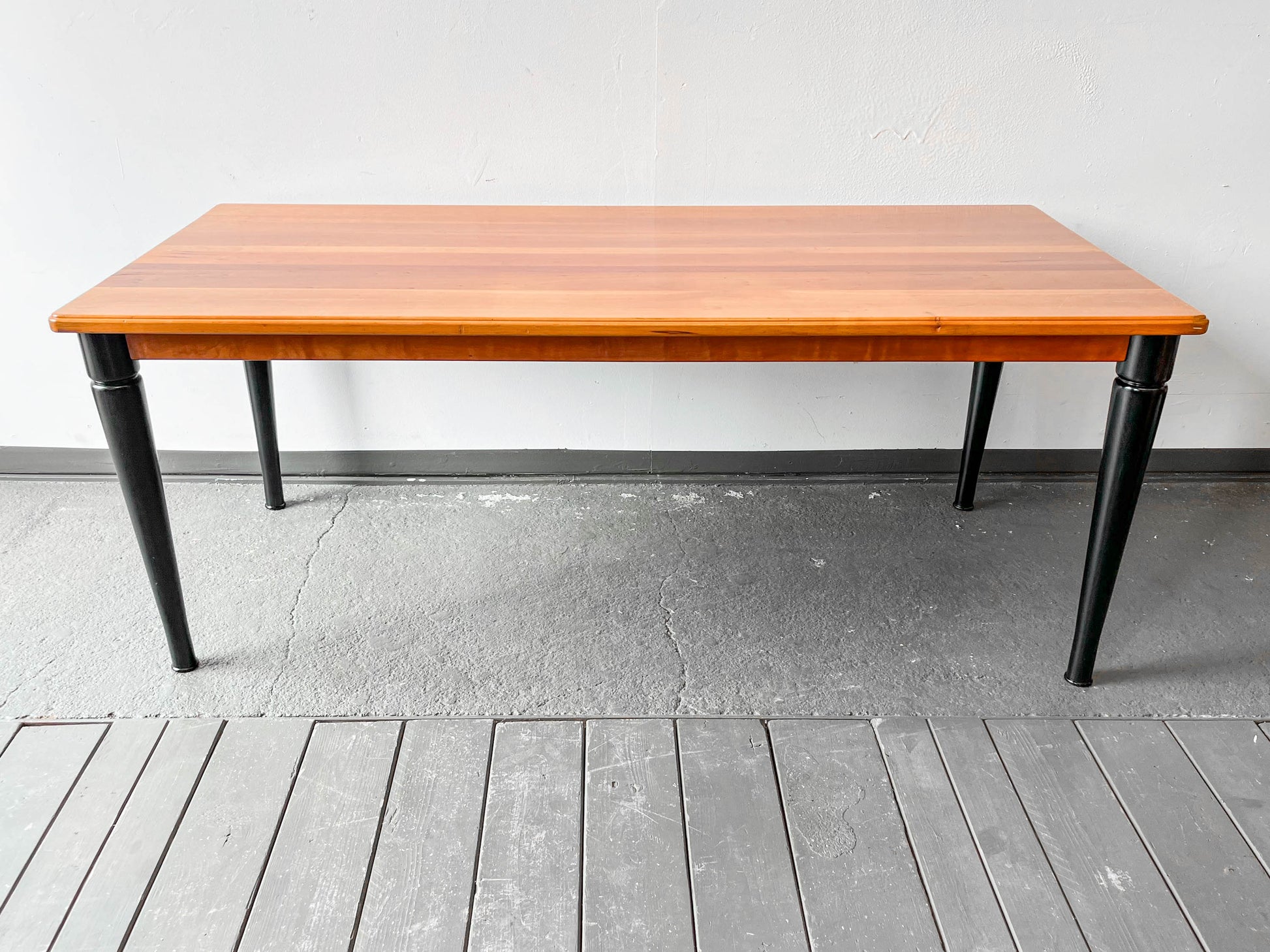 MATERIAL. tischplatte aus kirsche massiv · oberfläche lackiert · beine massivholz · schwarz lackiert