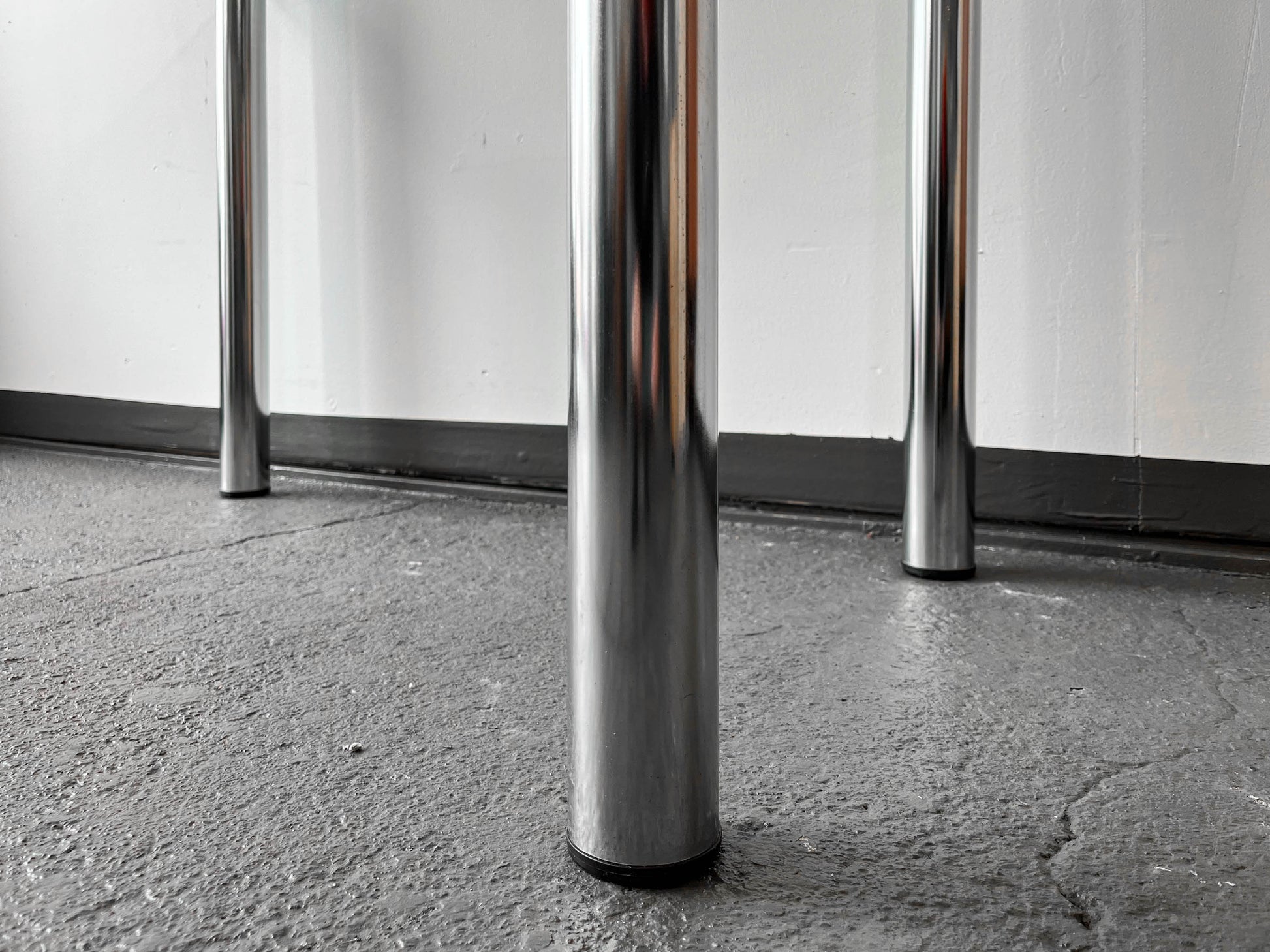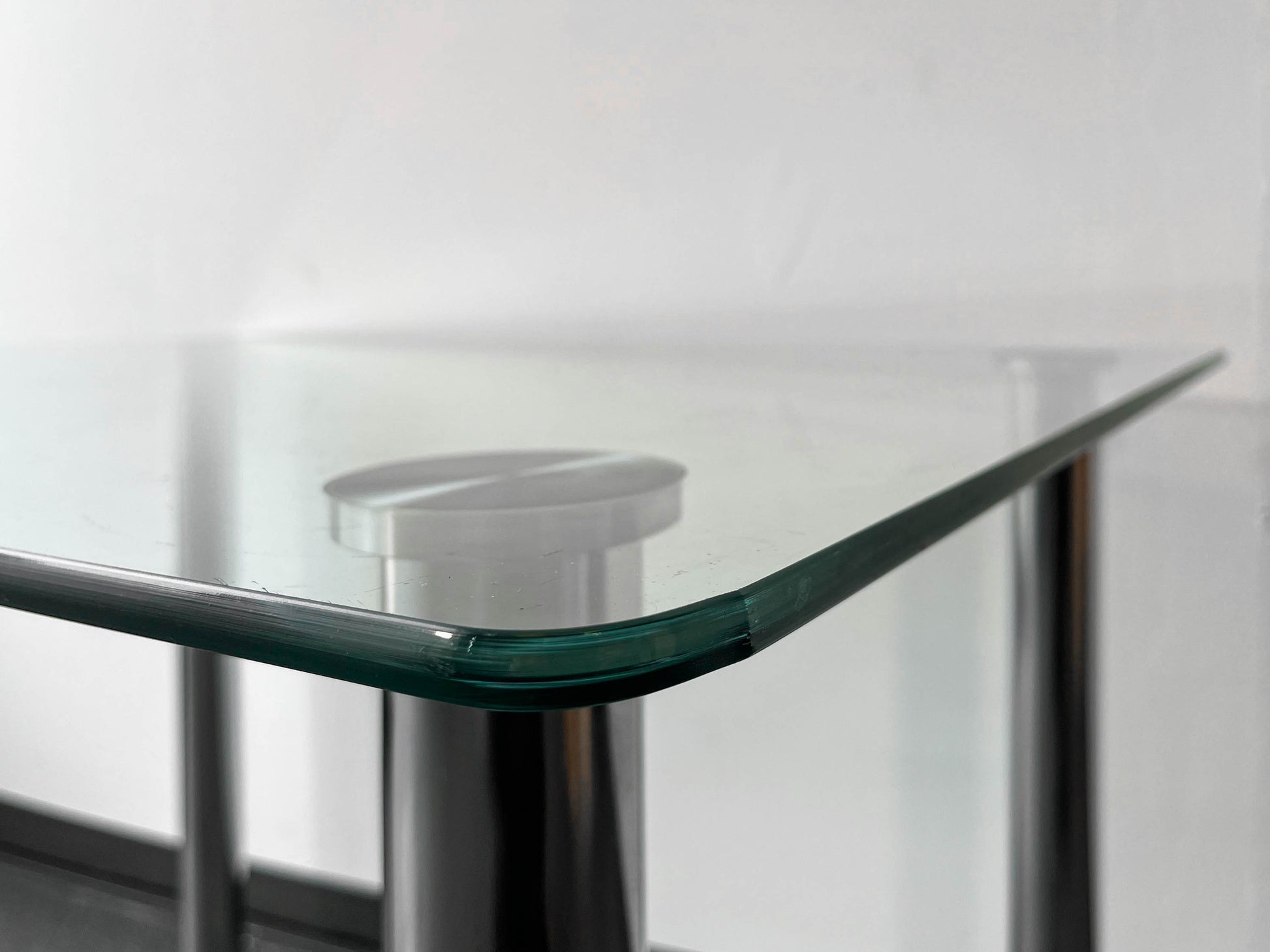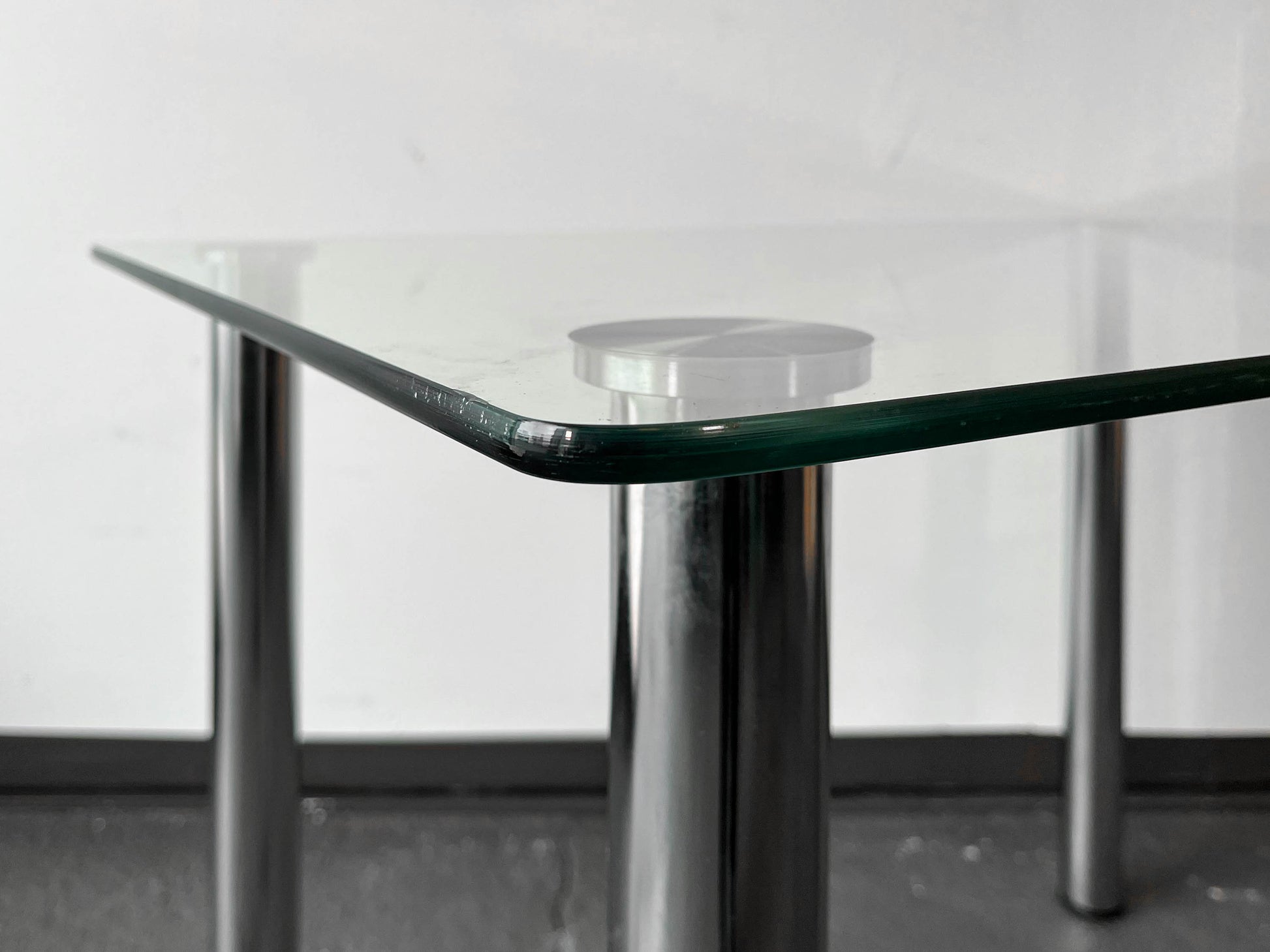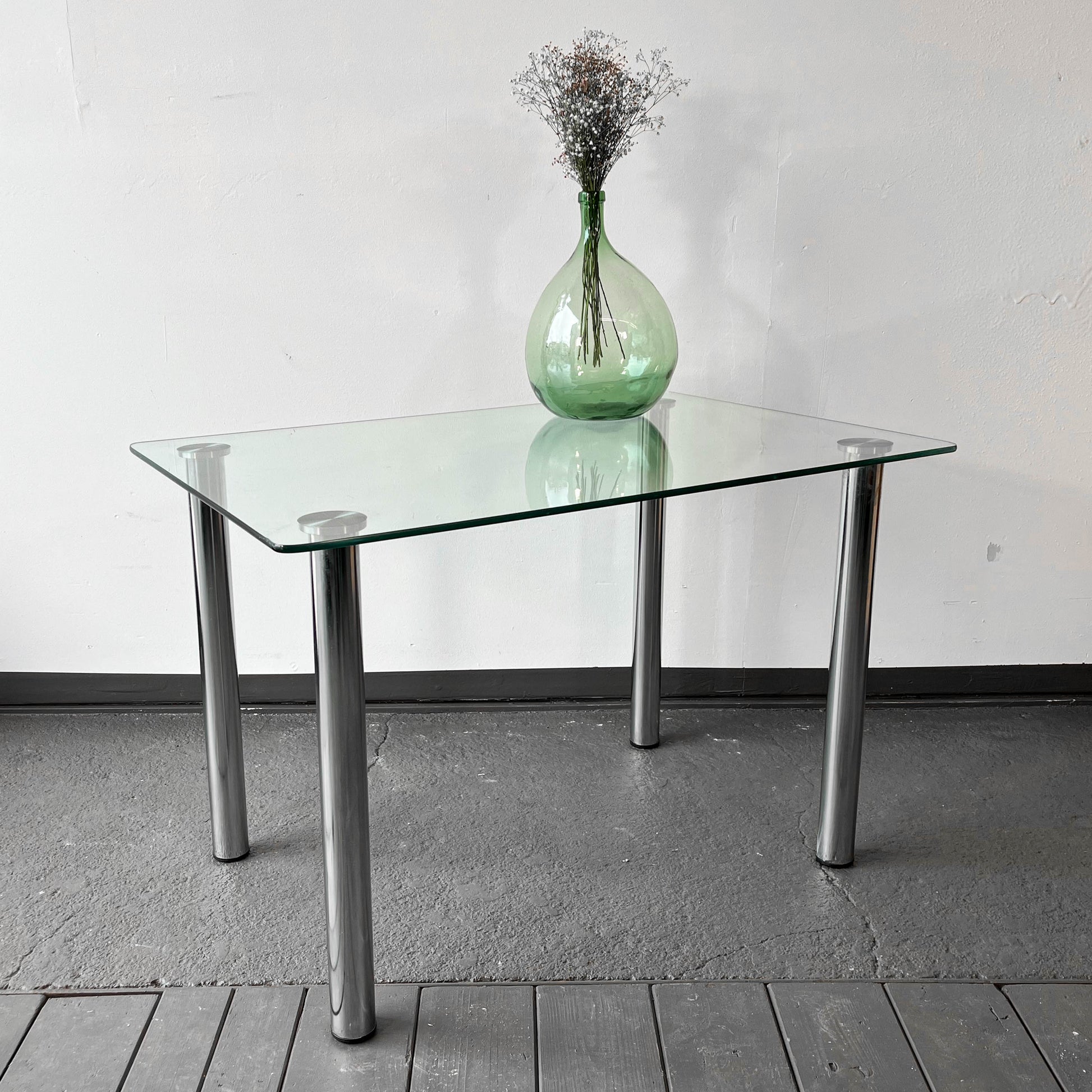 MATERIAL. glasplatte im leichten grünton · stabile verchromte füße