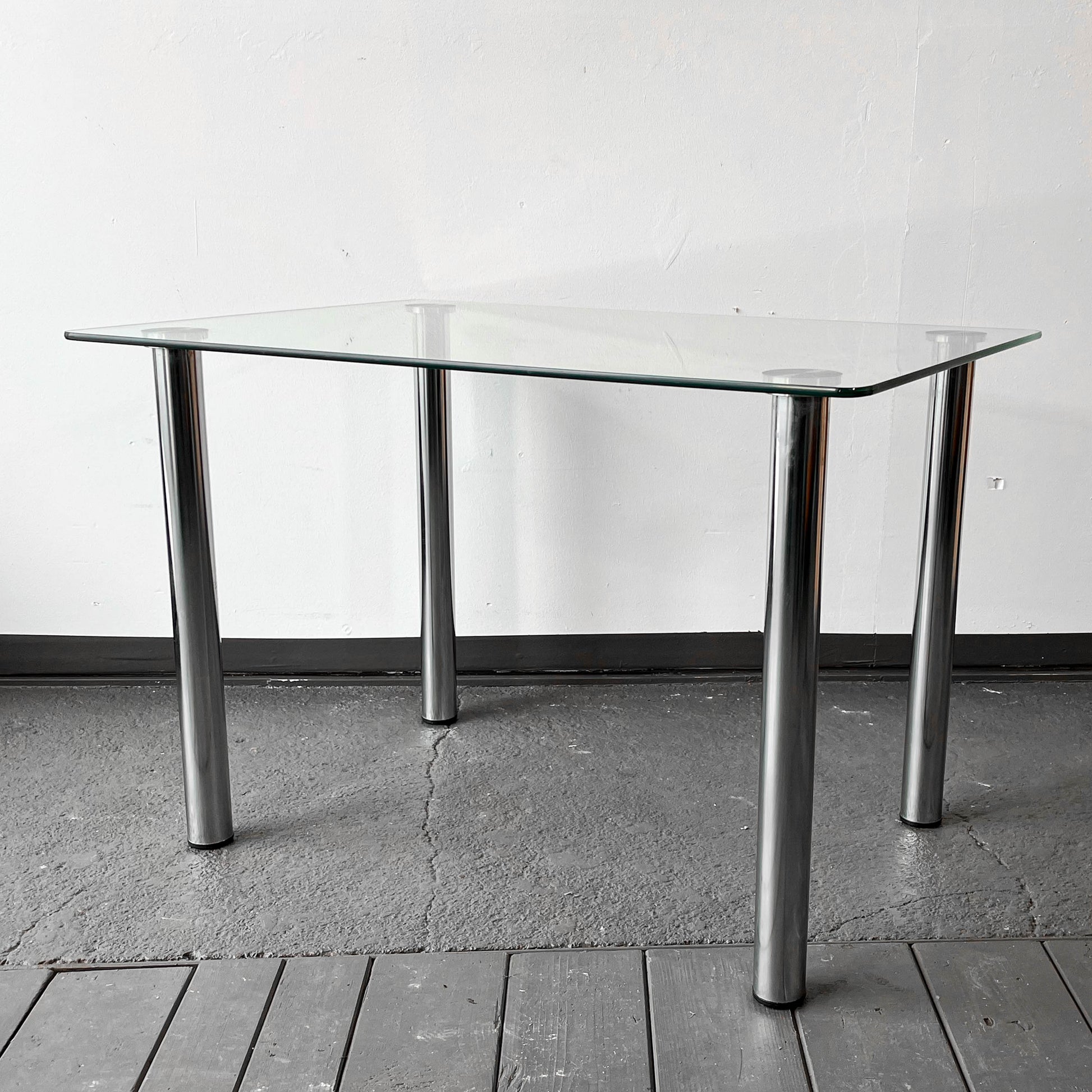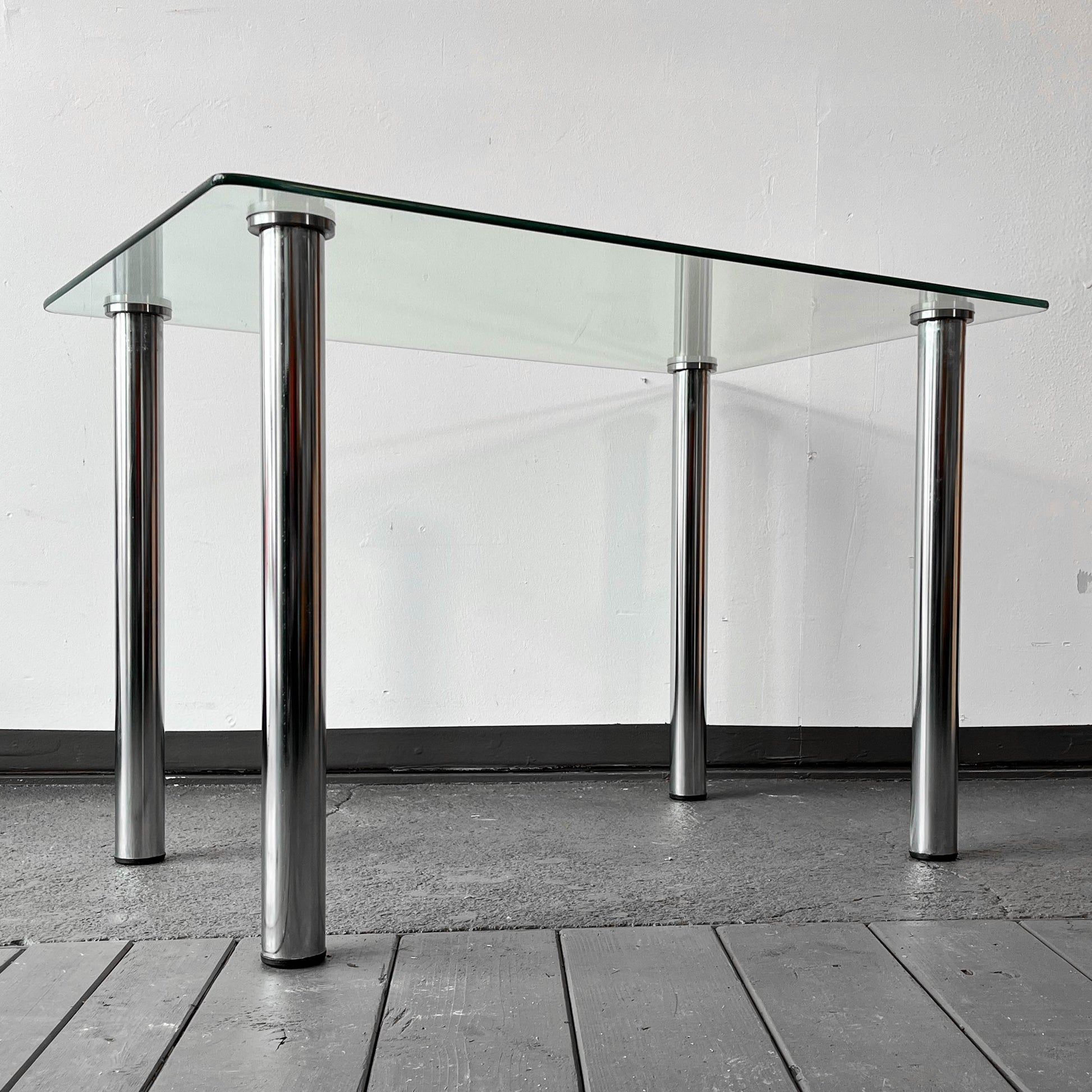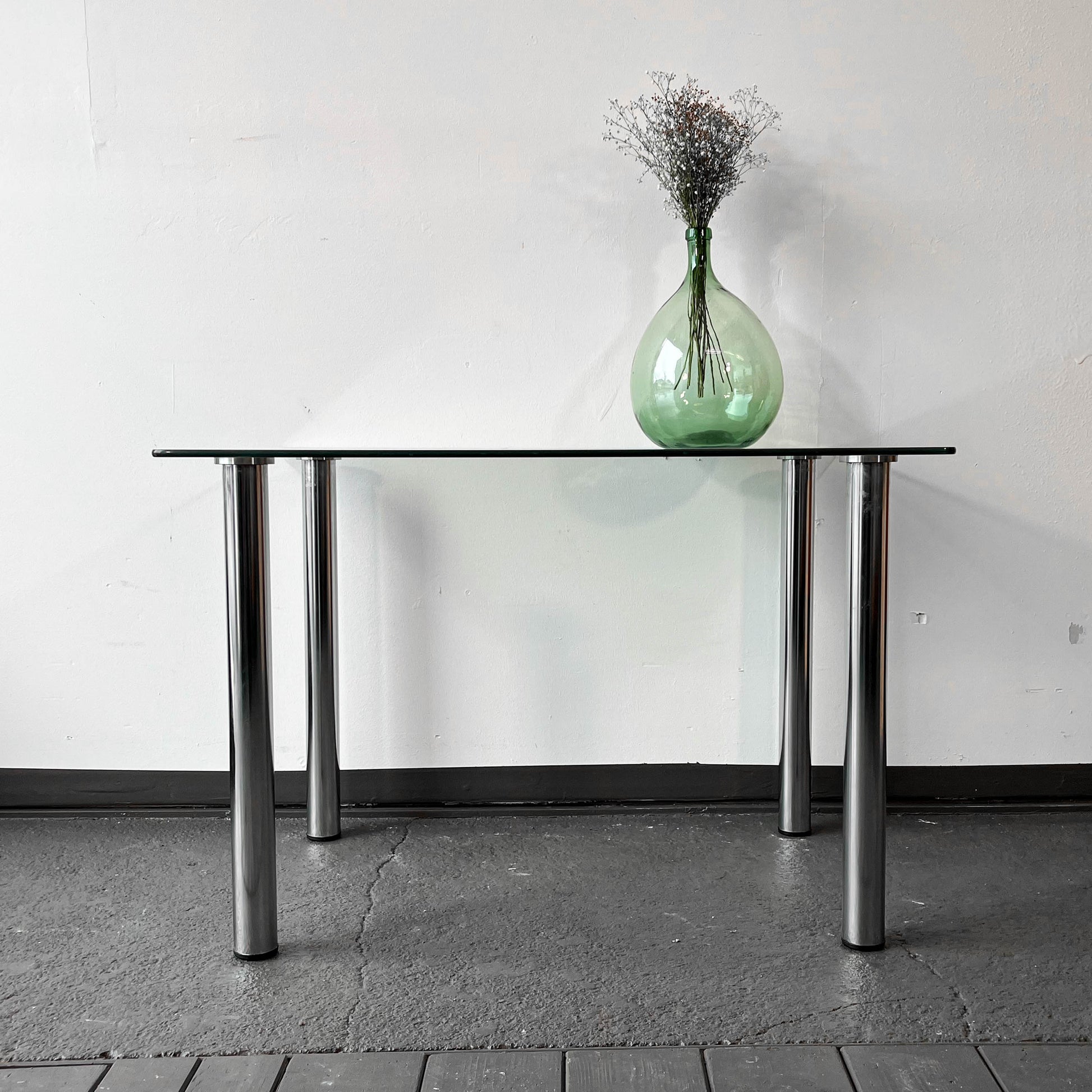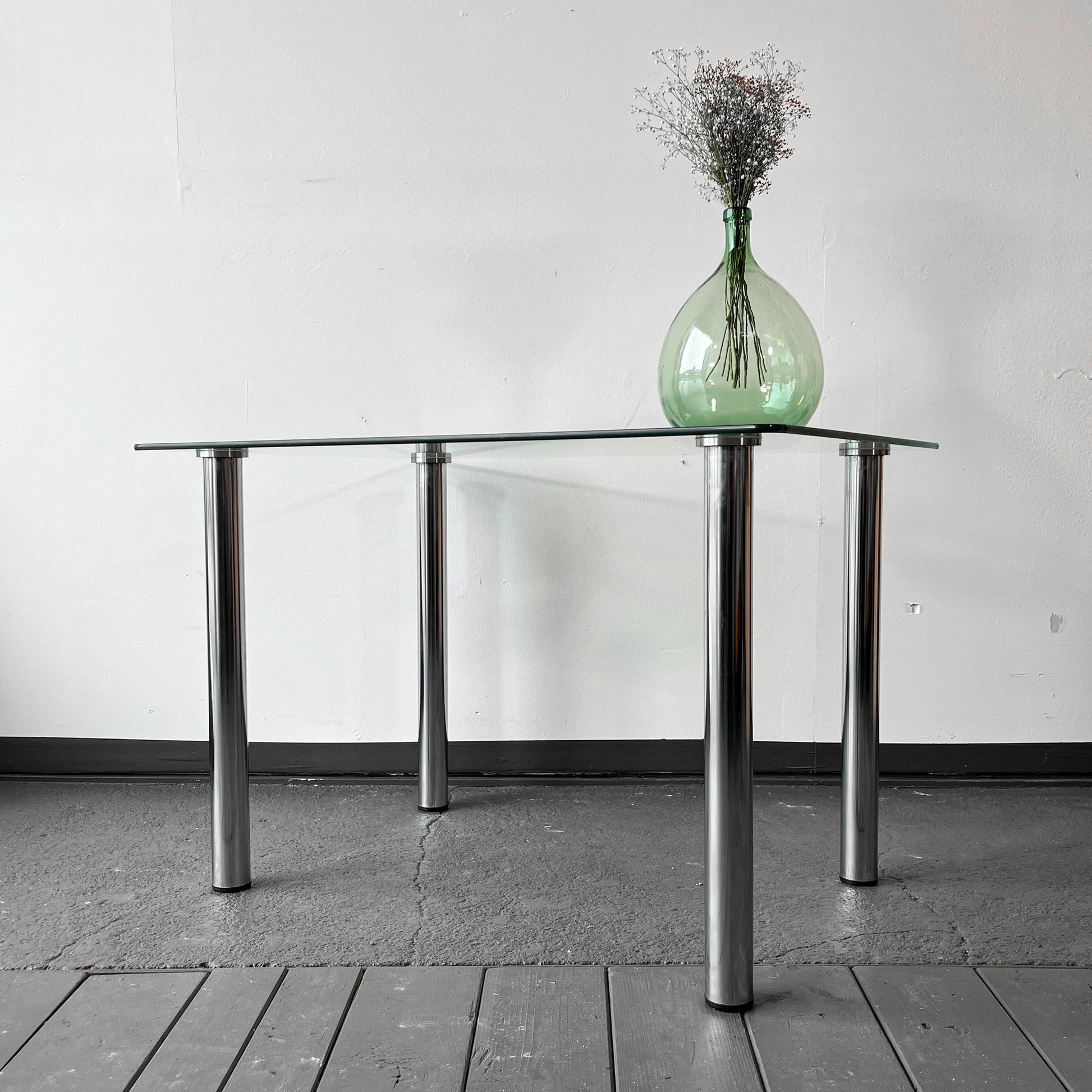 MATERIAL. glasplatte im leichten grünton · stabile verchromte füße