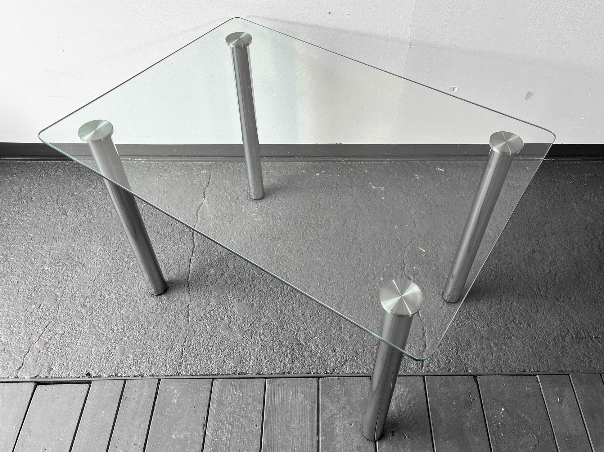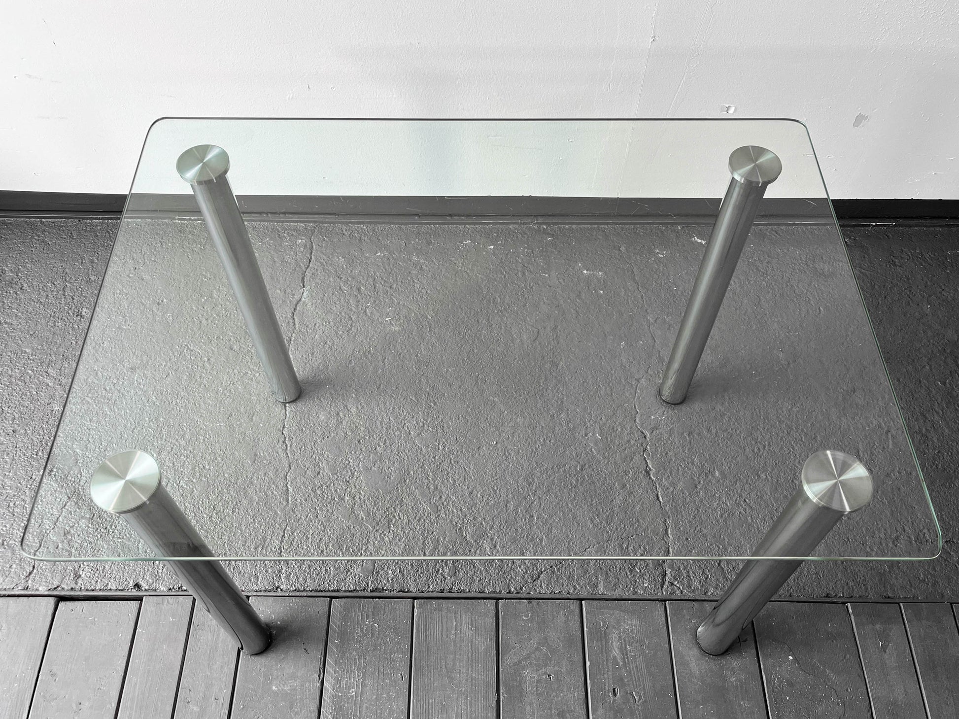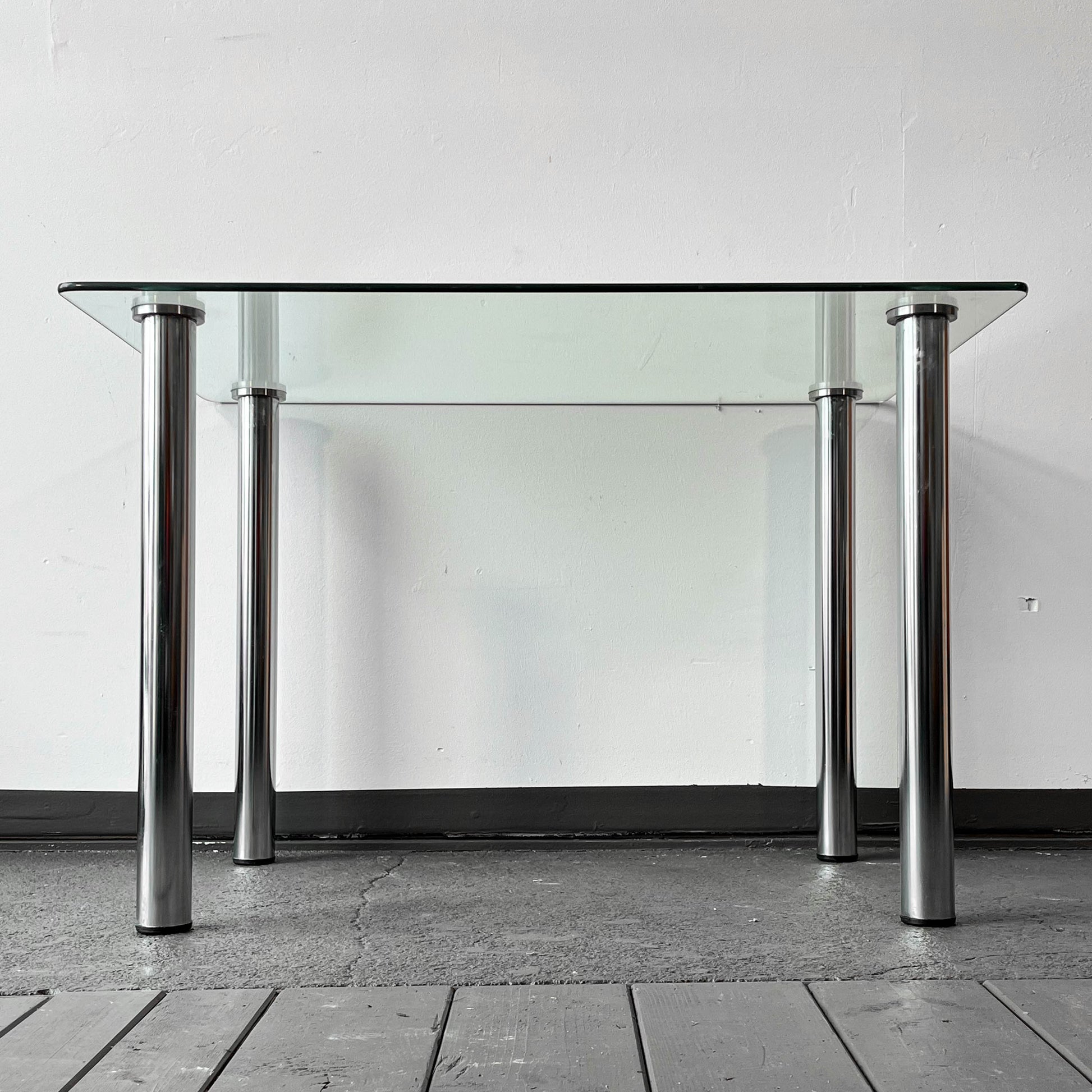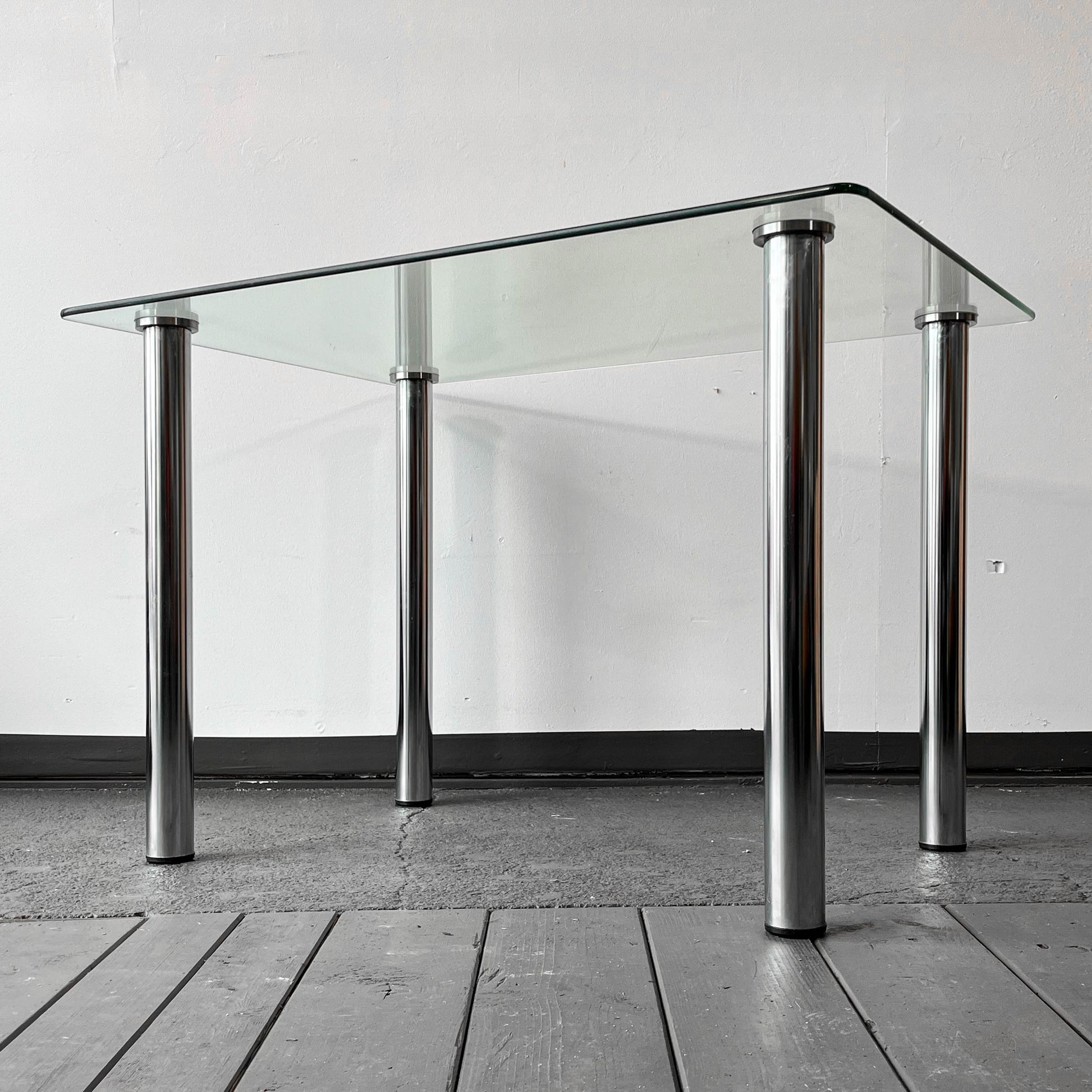 MATERIAL. glasplatte im leichten grünton · stabile verchromte füße