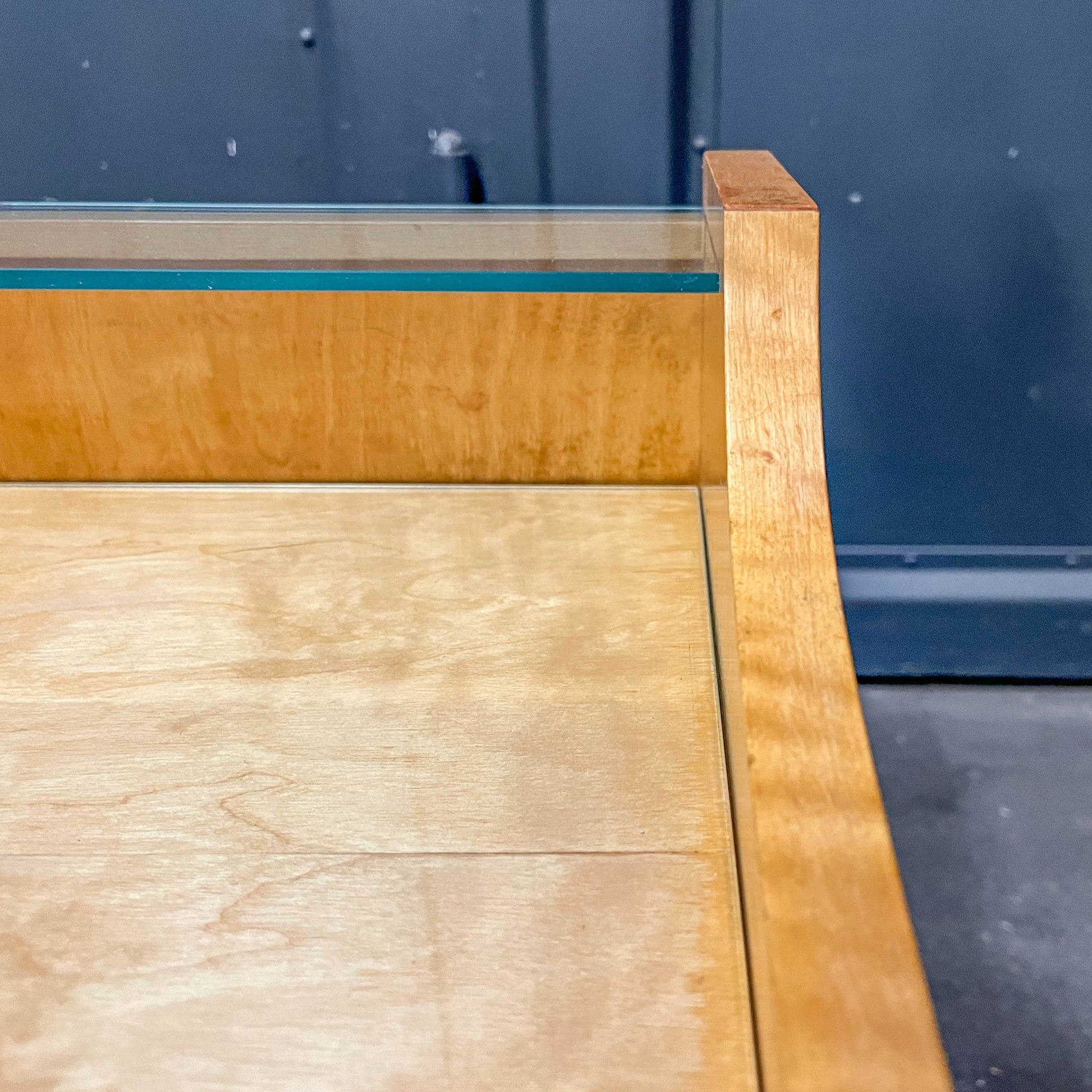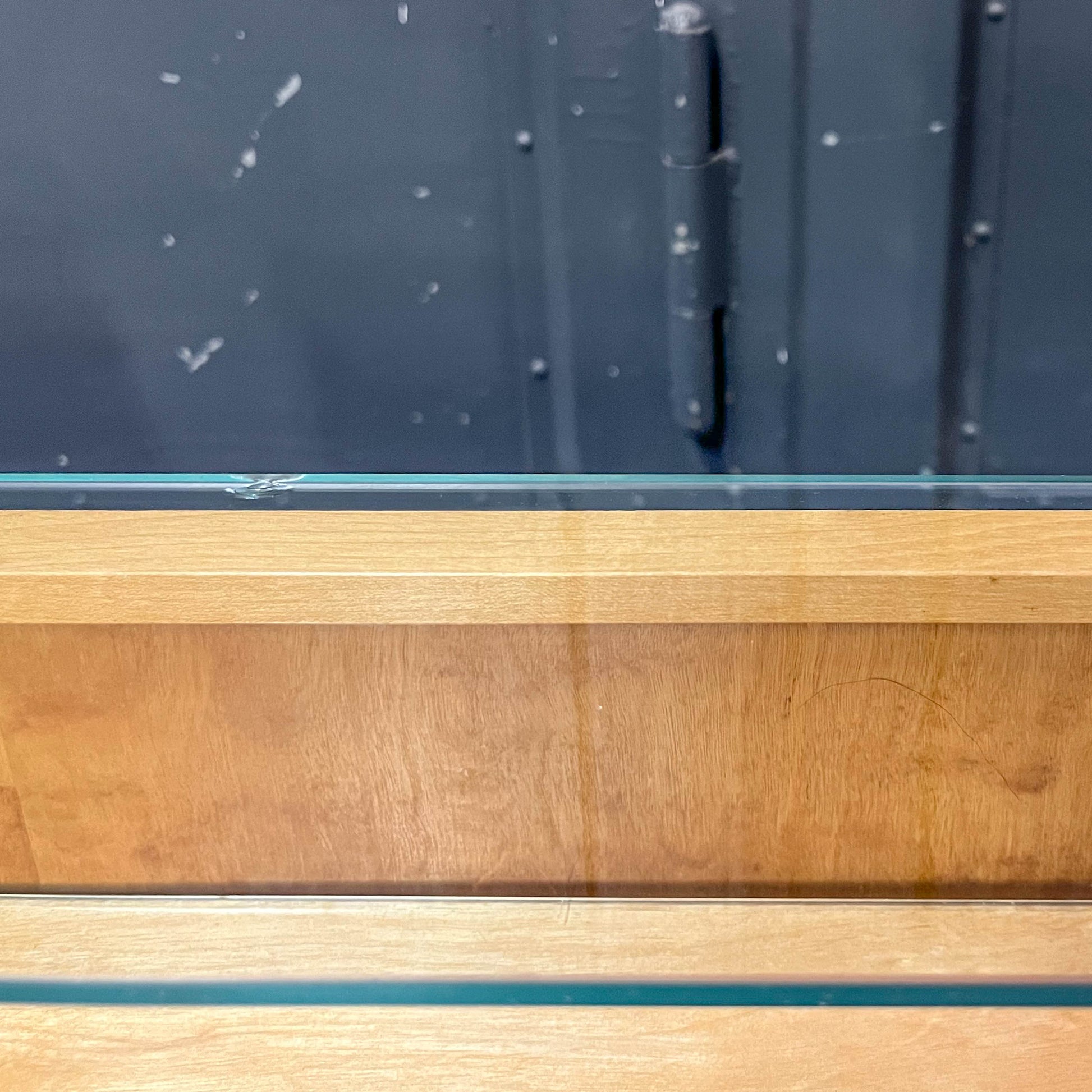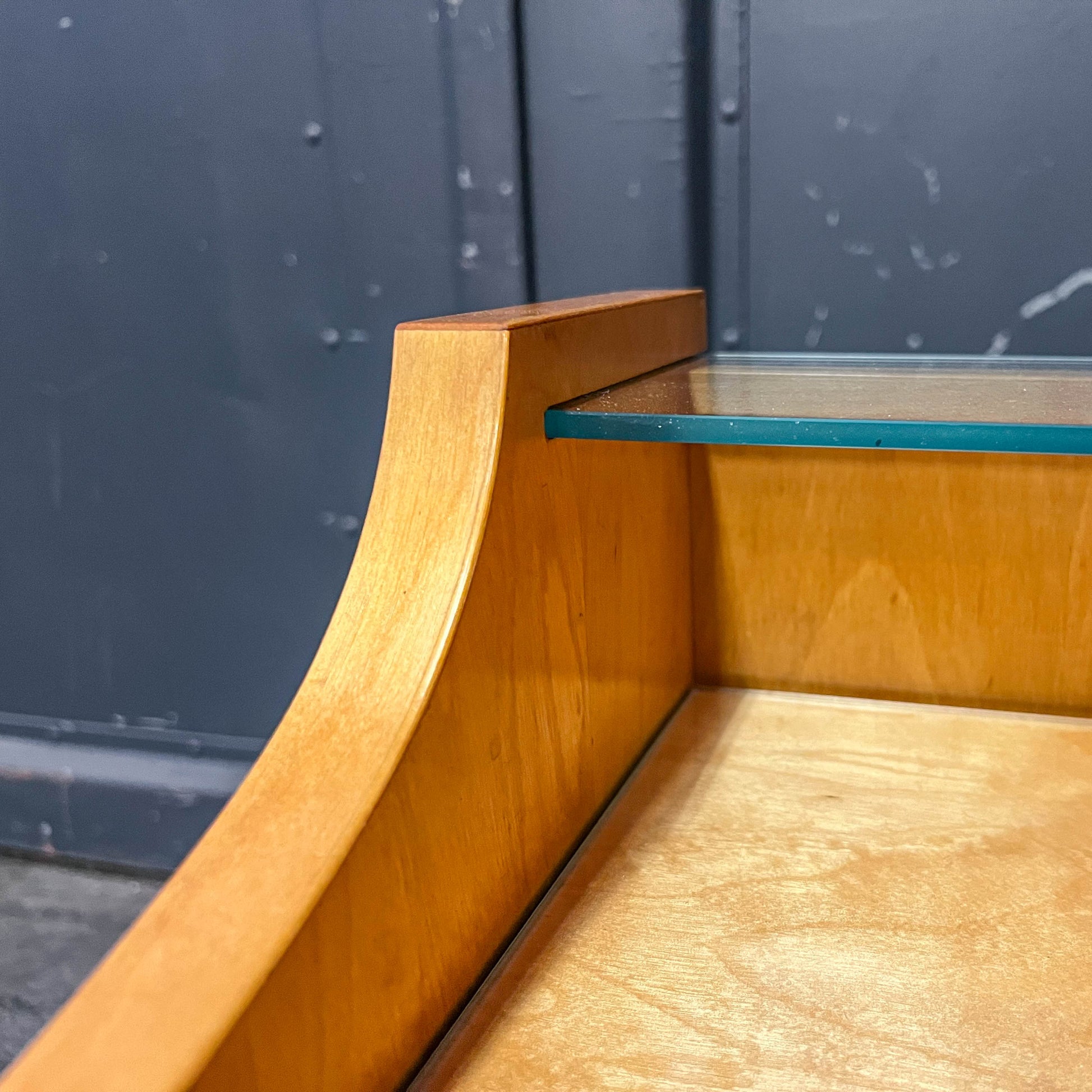 MATERIAL. korbus birke furniert · füße massivholz · glasauflagen · schubladen mit kunststoffbeschichtung · messingfarbene griffe