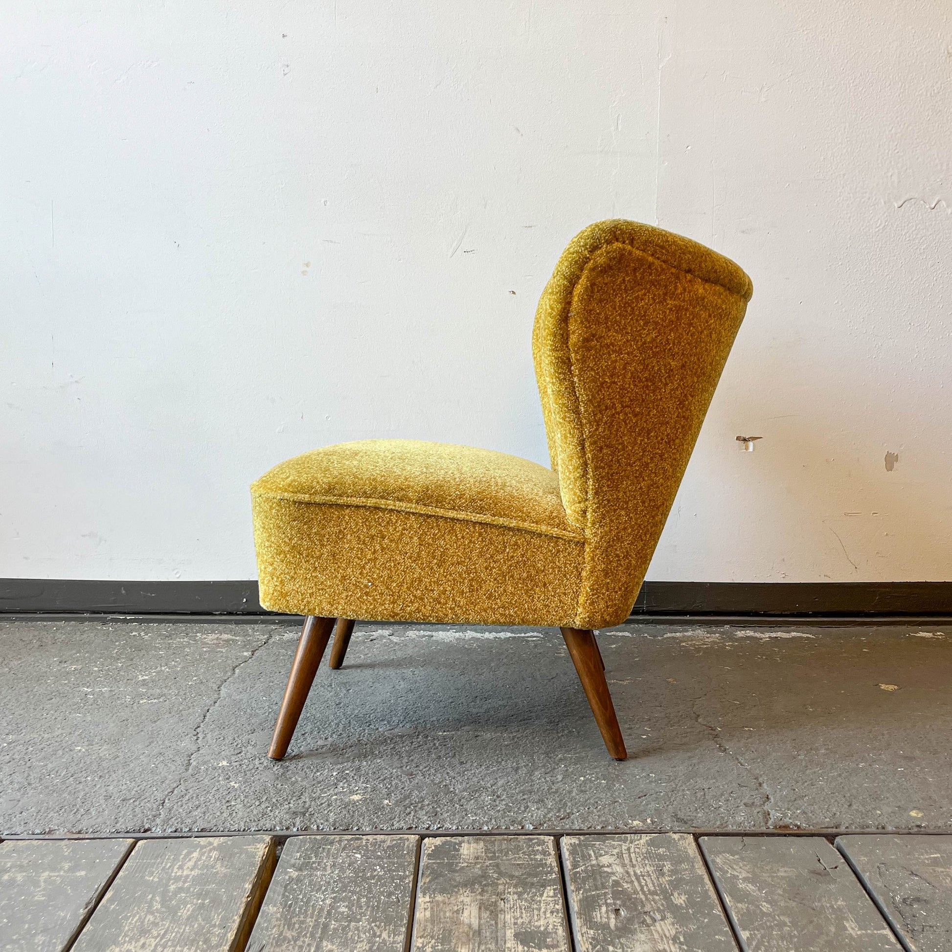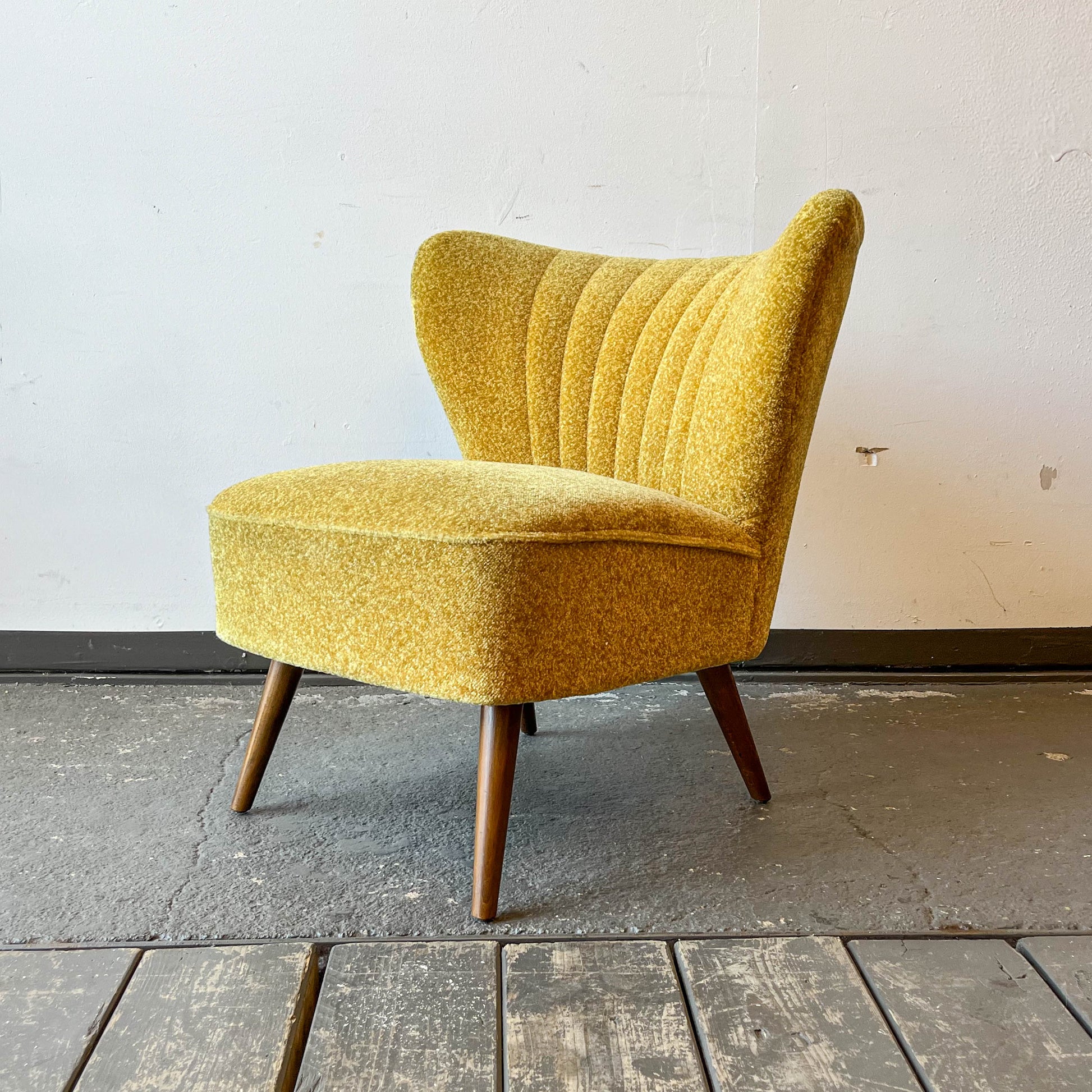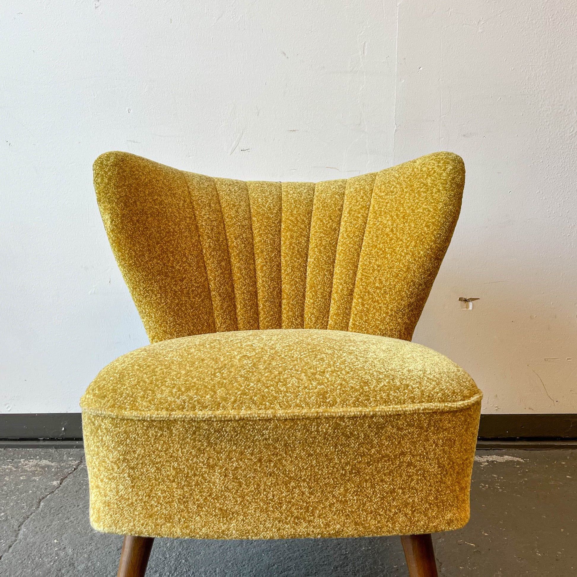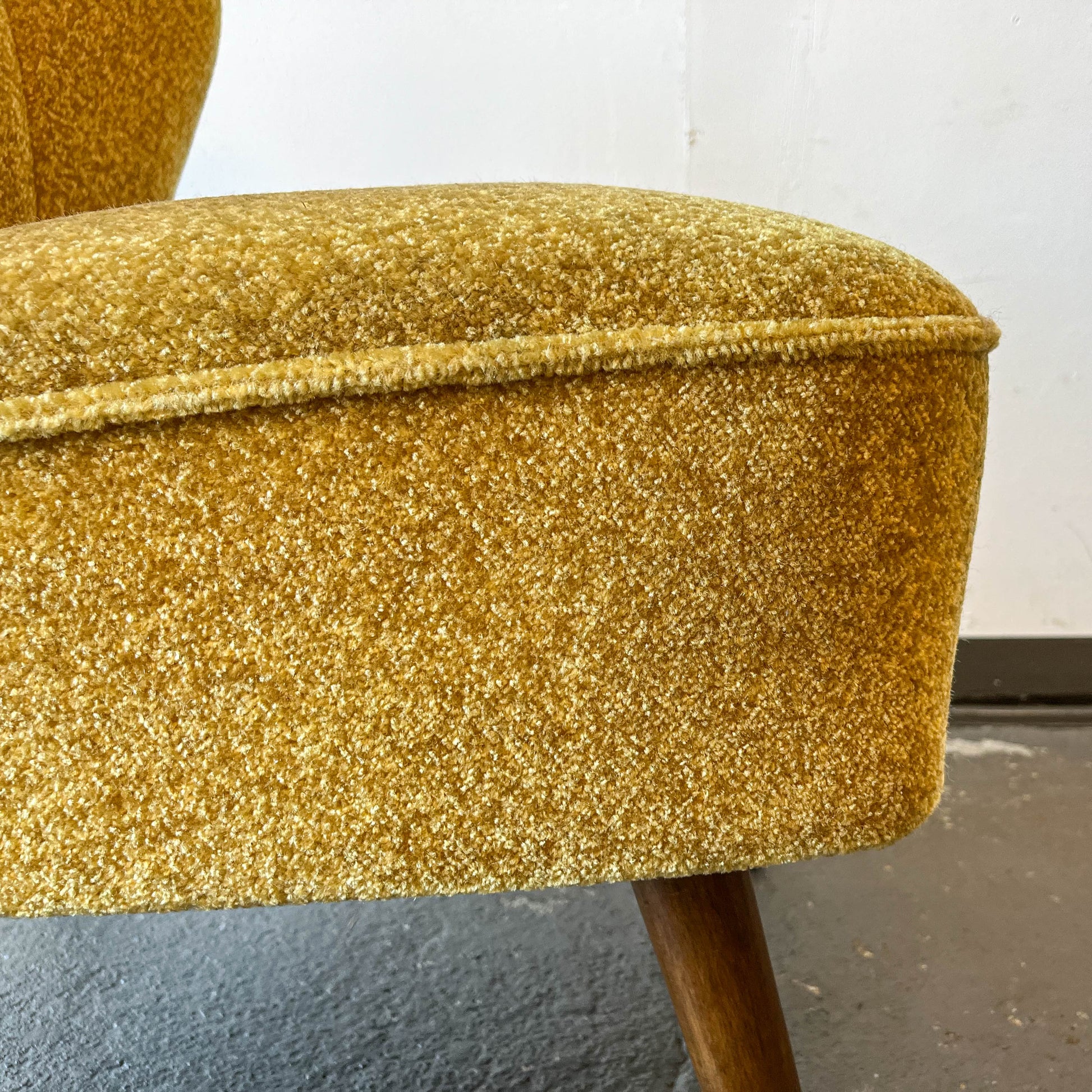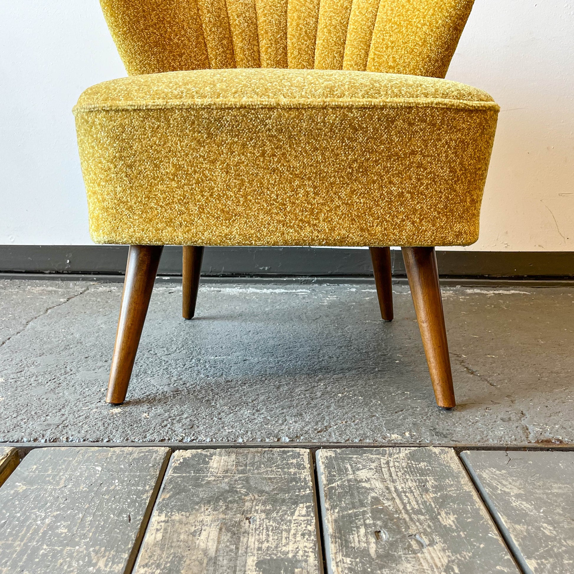 MATERIAL. polsterbezug · senffarben · holzfüße