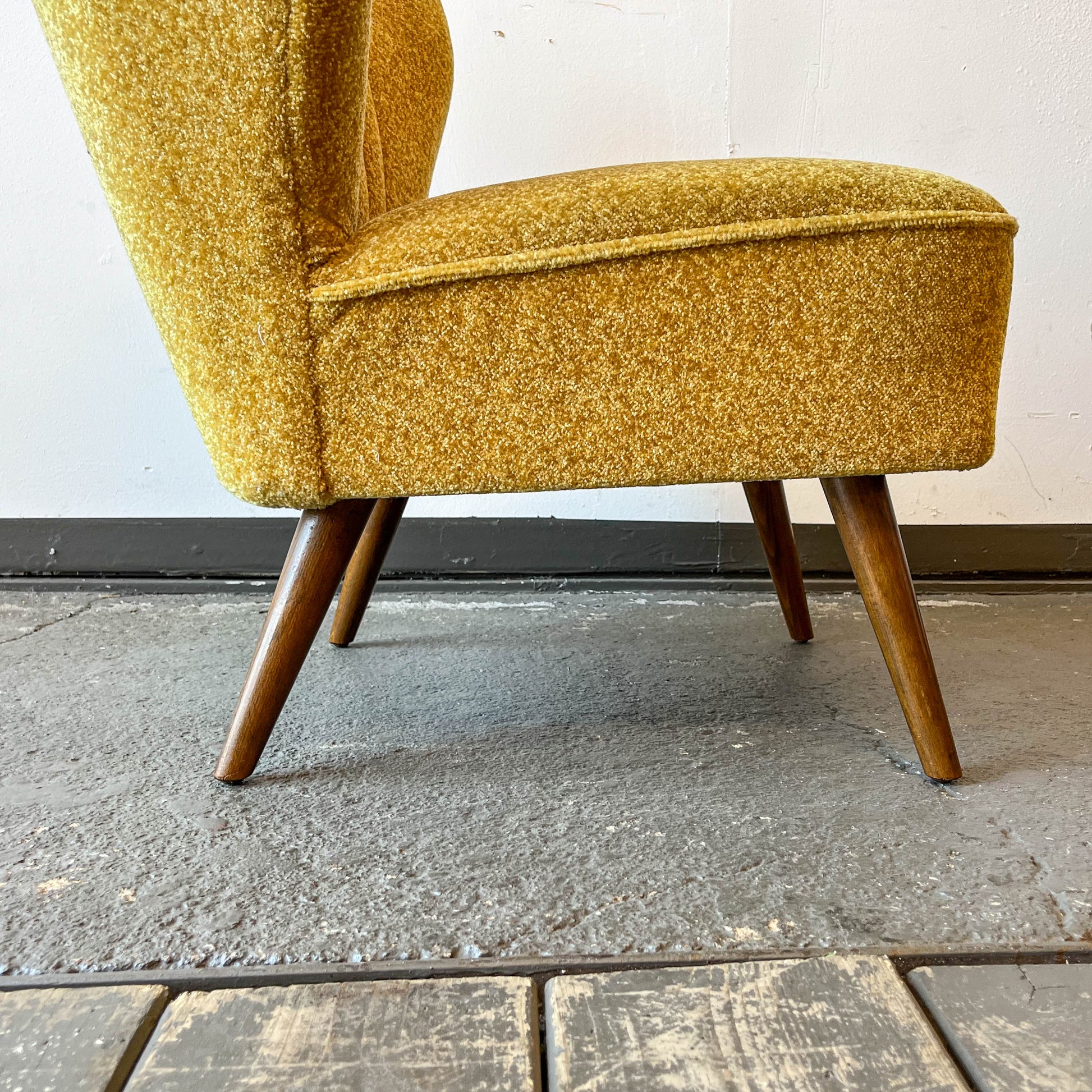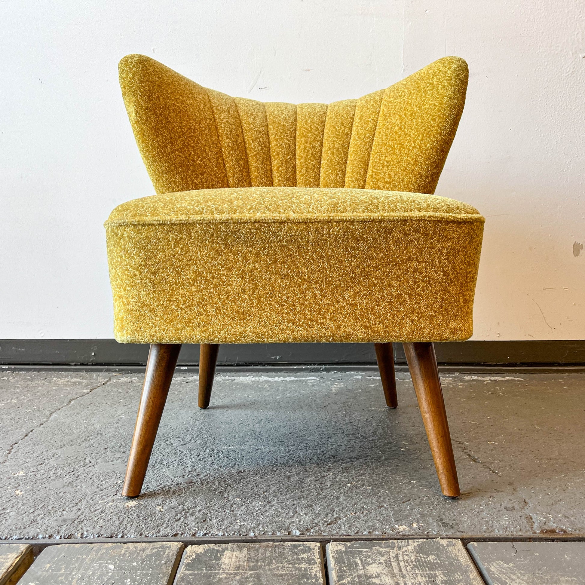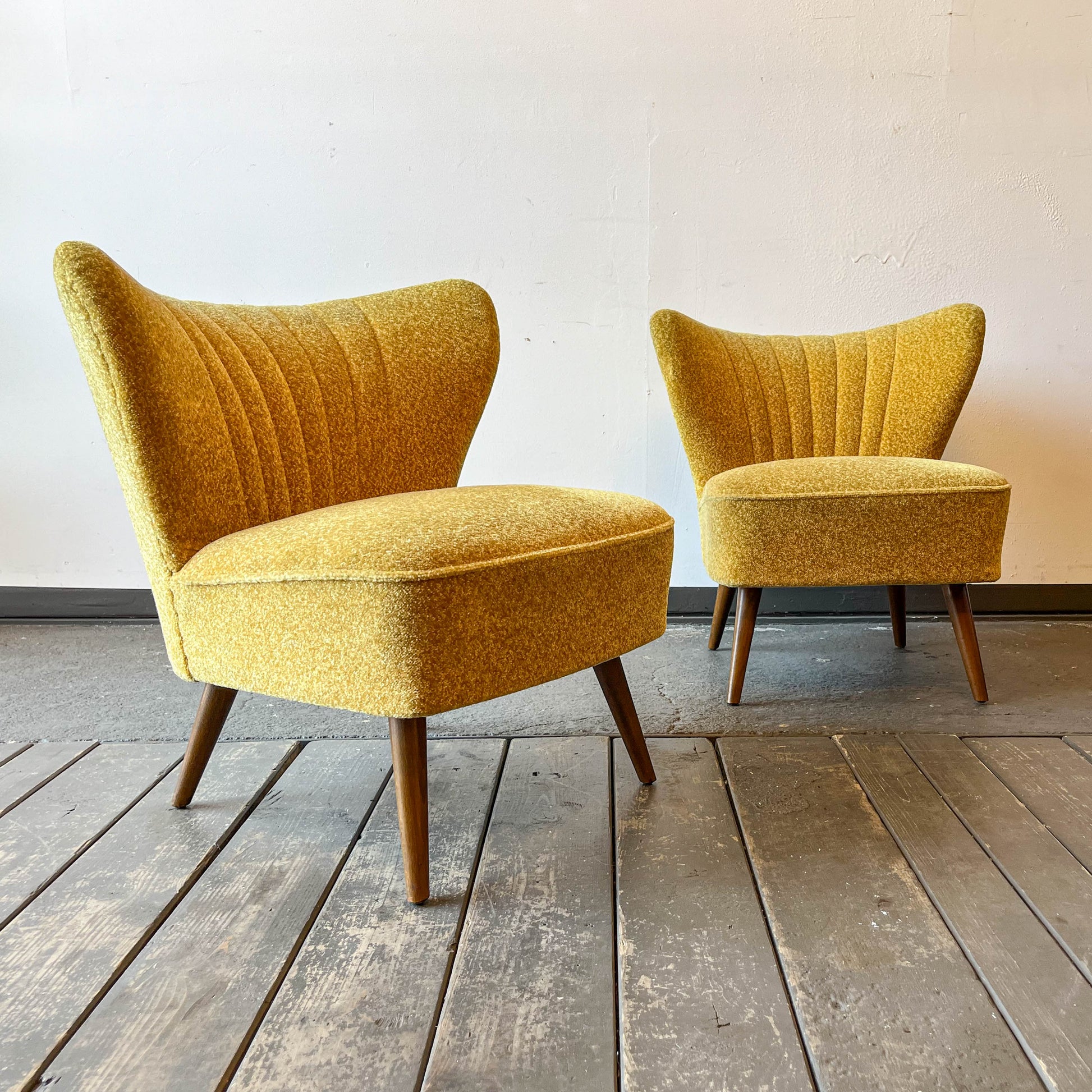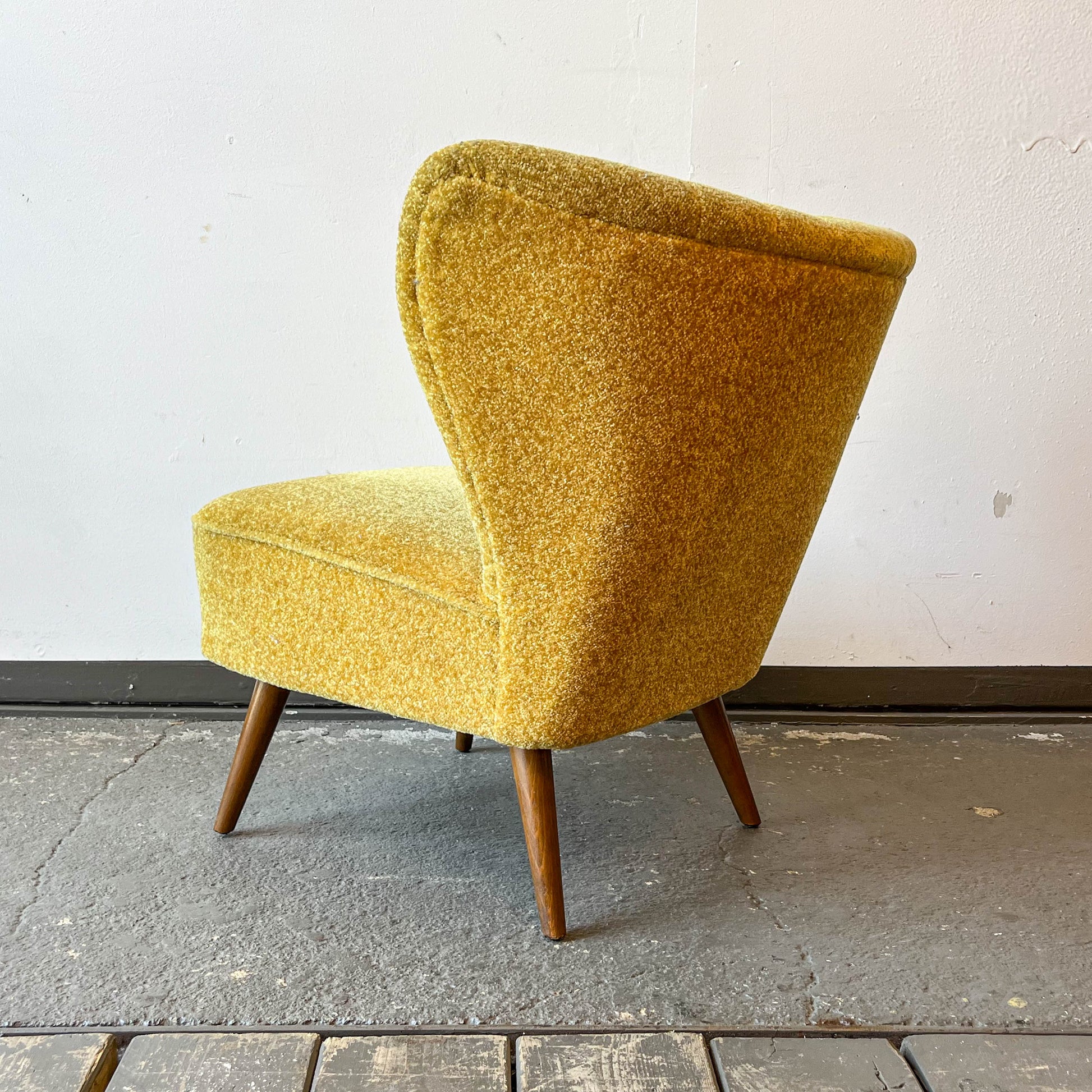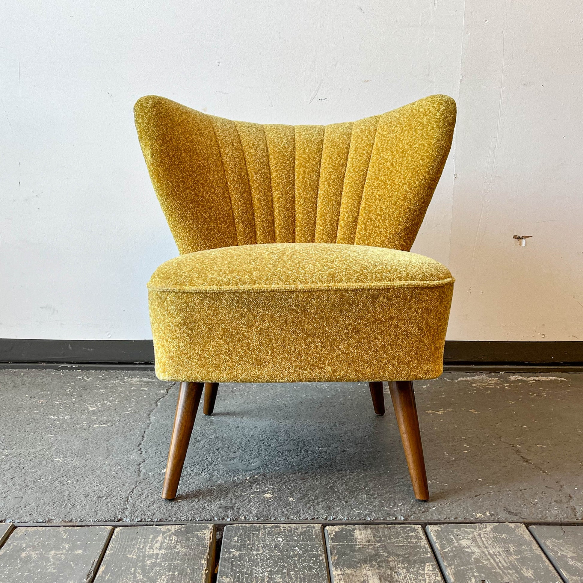 MATERIAL. polsterbezug · senffarben · holzfüße