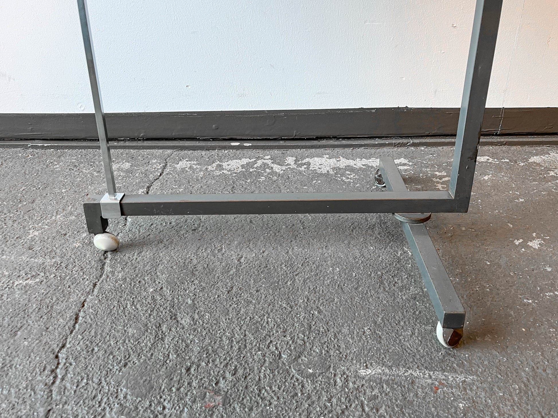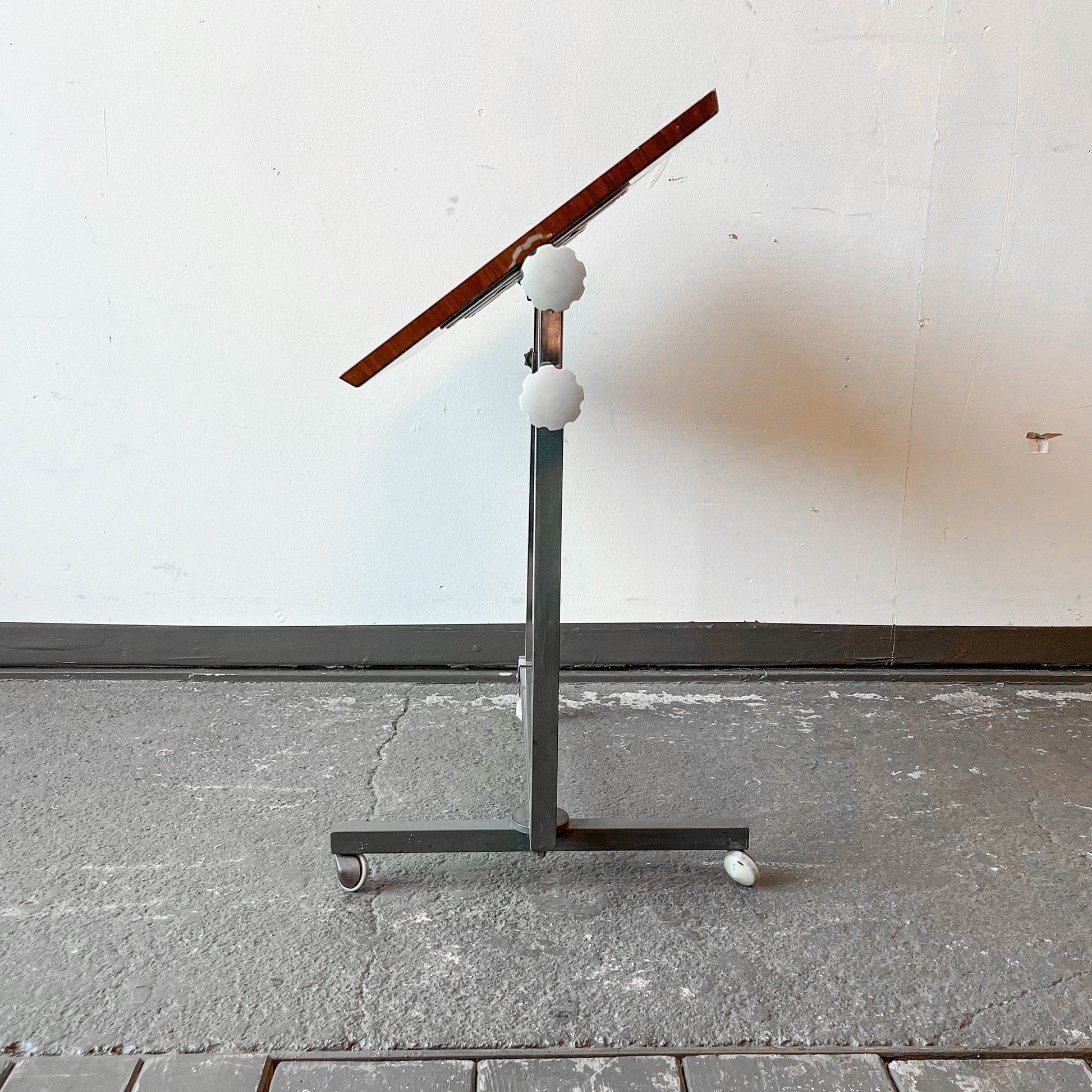 MATERIAL. metallgestell · teilweise beschichtet · kunststofftableau im braunton