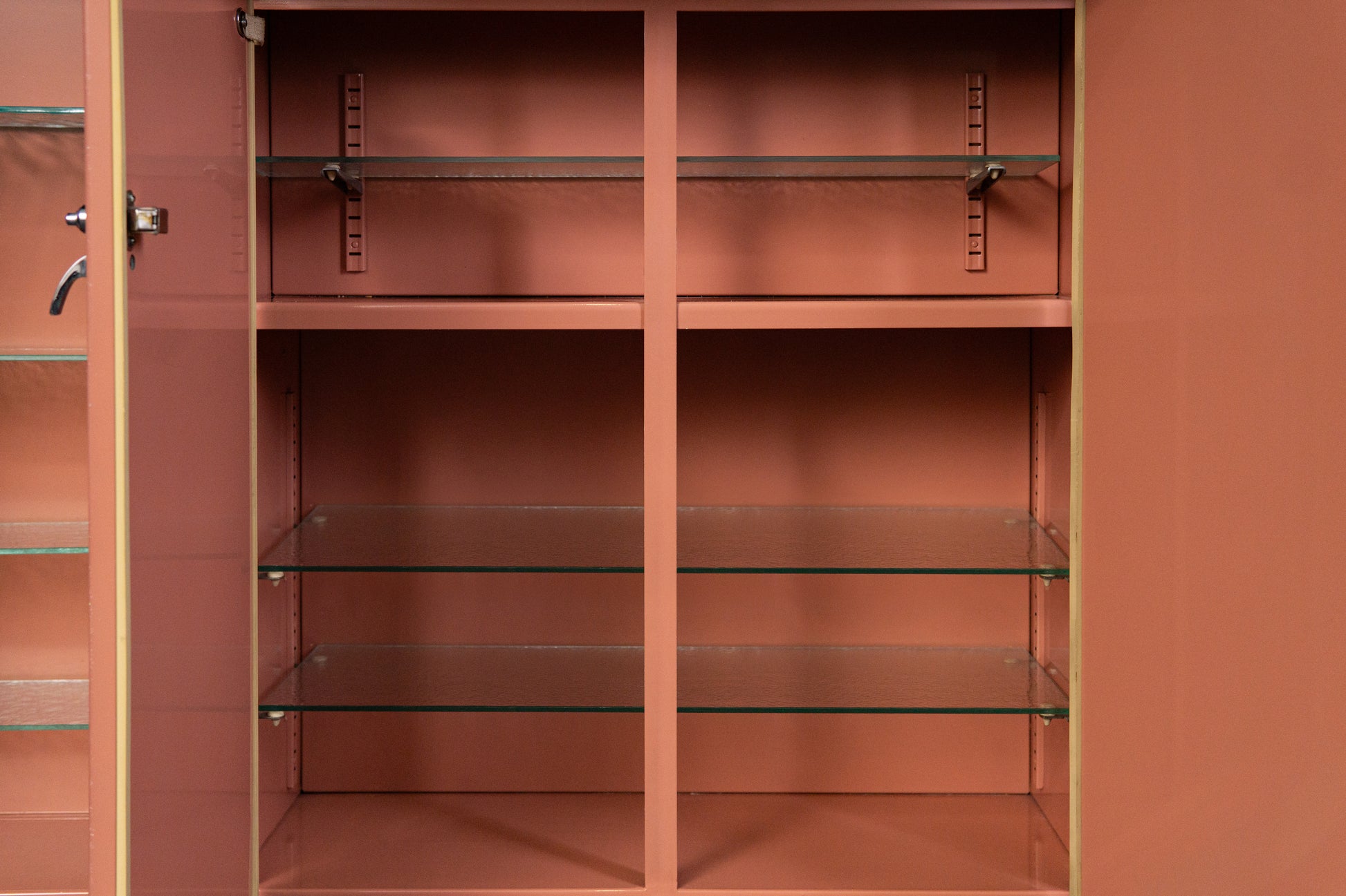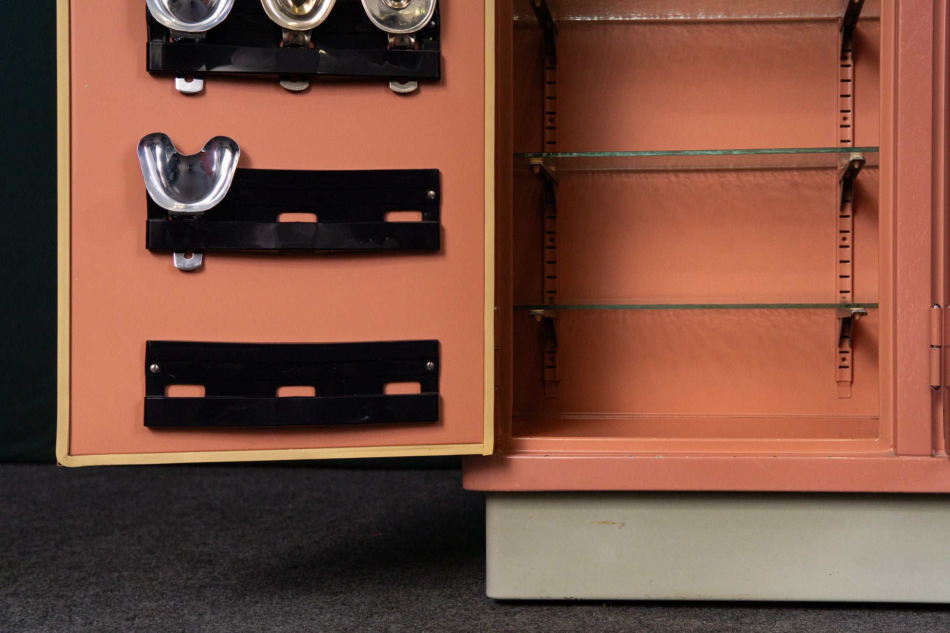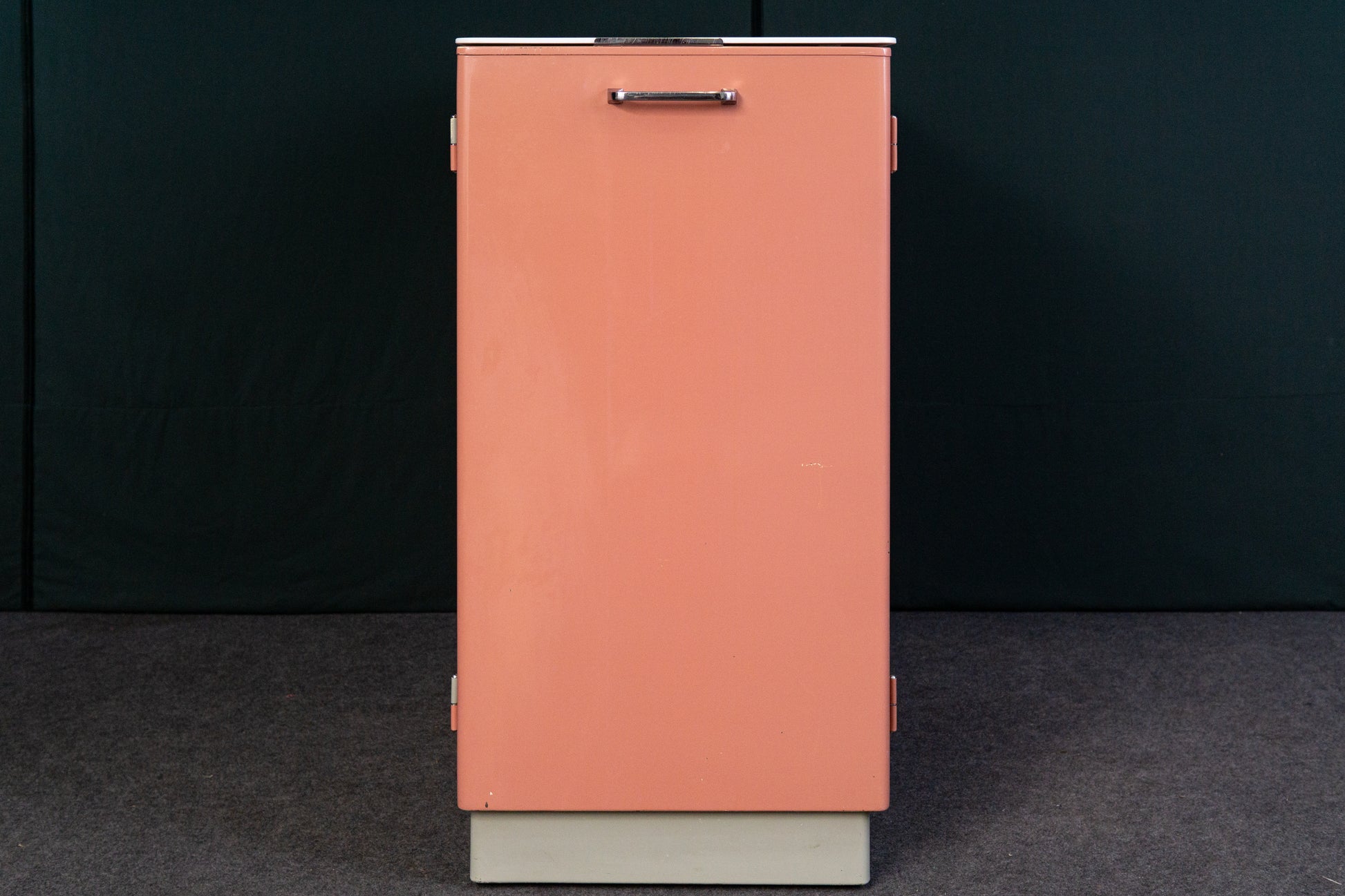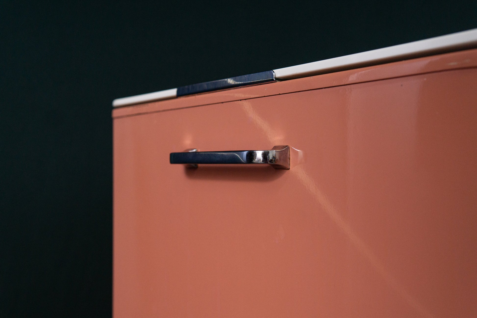 MATERIAL. metall lackiert in patelltönen blaugrau & rosa · weiße deckplatte · ornamentgläser