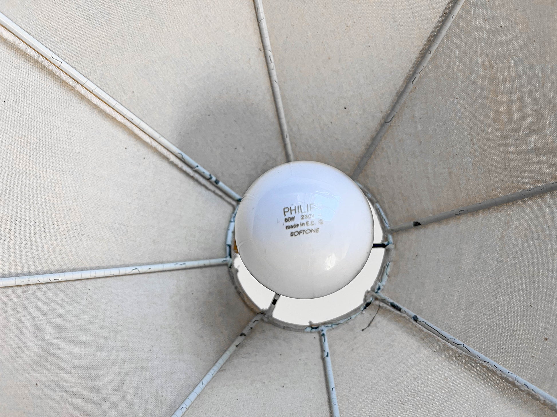 MATERIAL. lampenfuß aus weichholz und metall · lampenschirm aus stoff